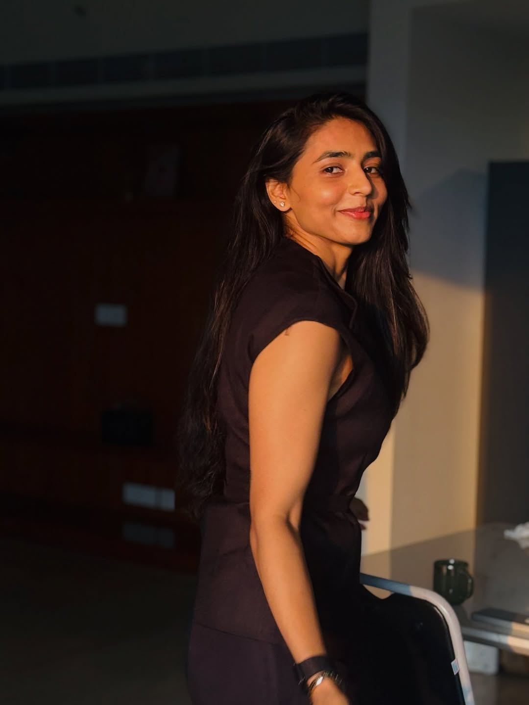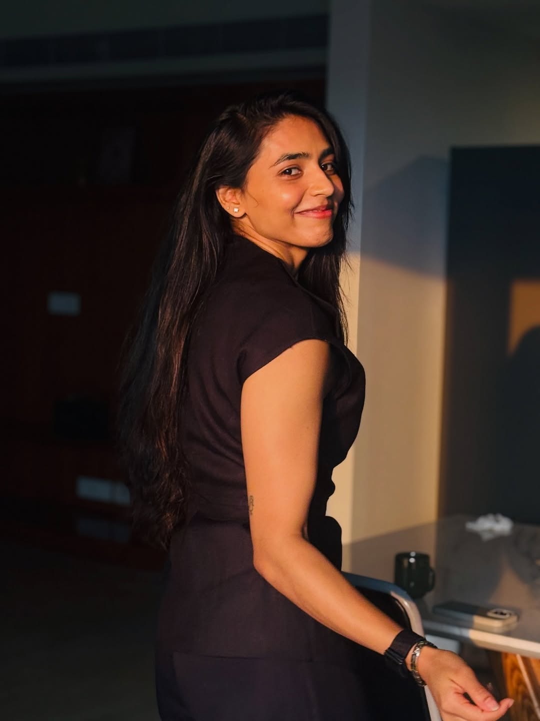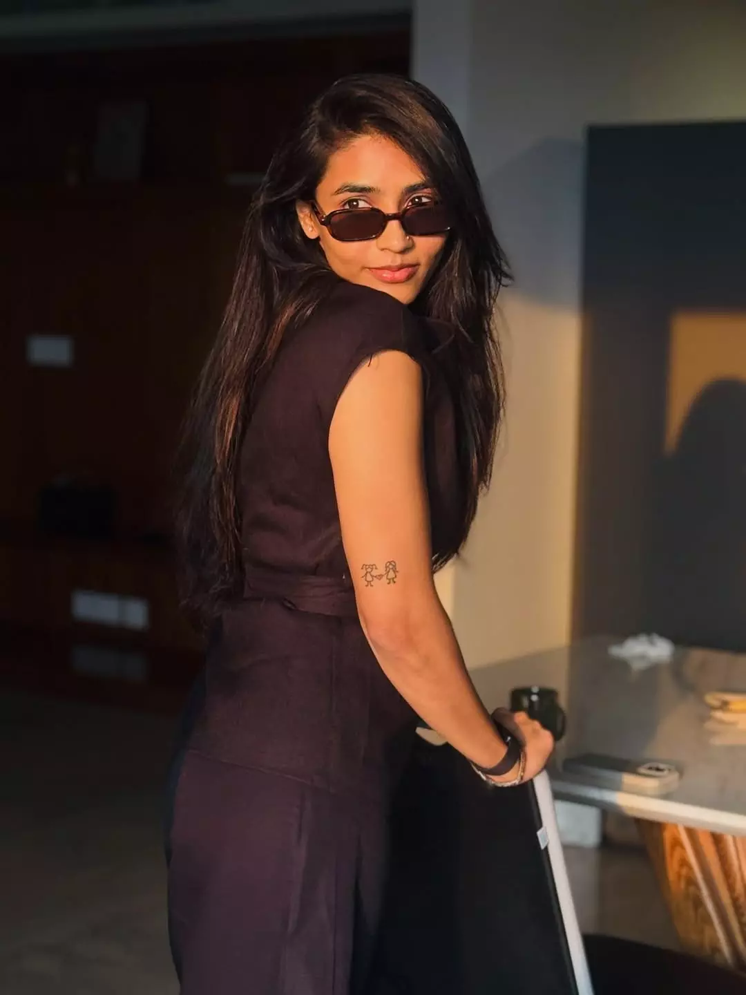 Sapthami Gowda, a popular face in South Indian cinema, recently shared a cheerful photo on her Instagram profile, and fans are loving it. In one of the pictures, Sapthami is seen sitting comfortably on a chair, smiling with full confidence. She is wearing a simple black dress and looks very natural and happy. On her Instagram, Sapthami Gowda posted this picture with a caption that includes sun and light emojis.