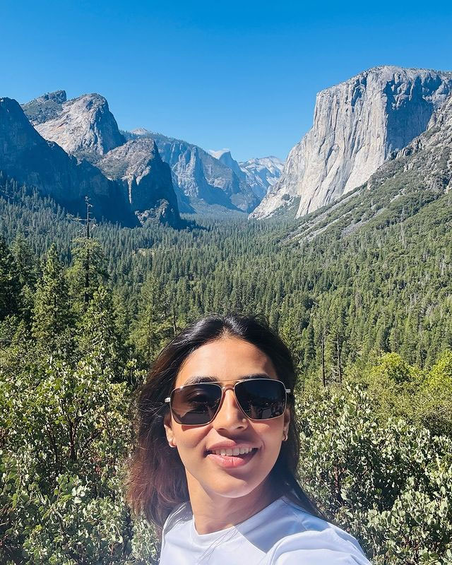 She is wearing a simple black dress and looks very natural and happy. On her Instagram, Sapthami Gowda posted this picture with a caption that includes sun and light emojis.