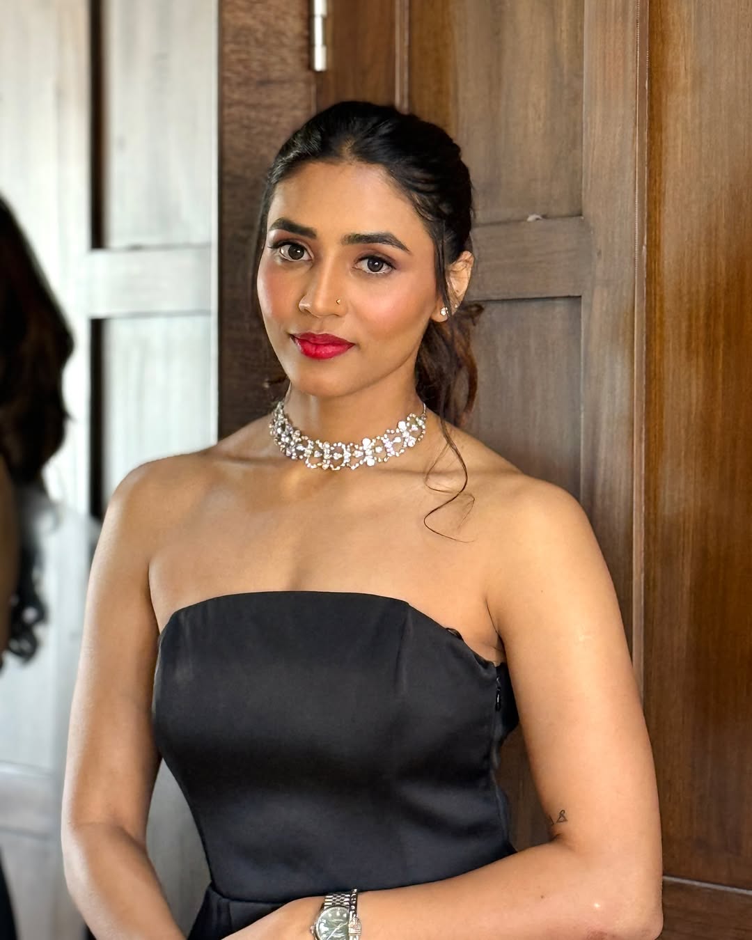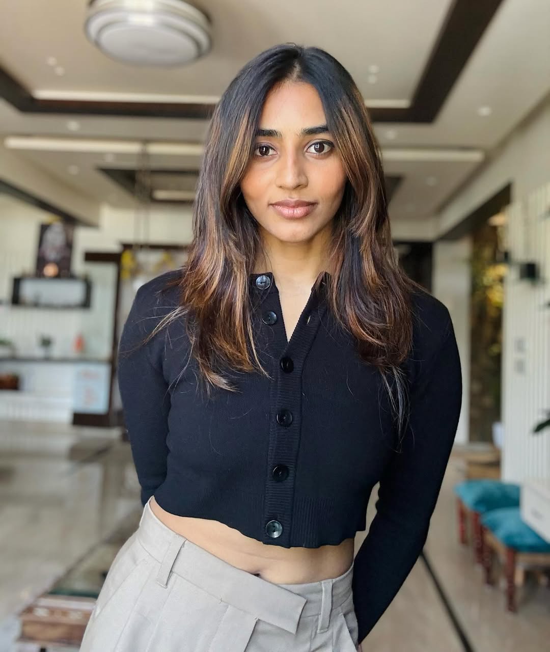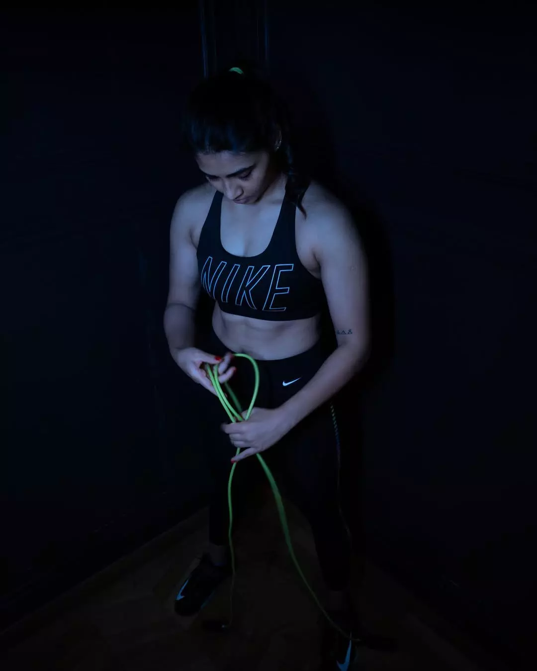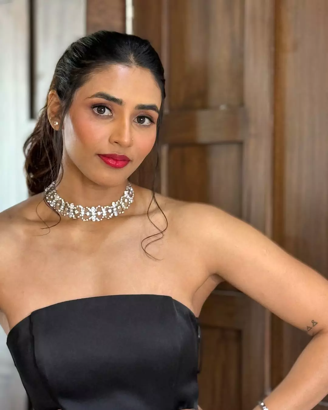 She was last seen in the Telugu survival action drama film Thammudu. The movie was written and directed by Venu Sriram. It was produced by Dil Raju under Sri Venkateswara Creations. The film featured Nithiin, Laya, Sapthami Gowda, and Varsha Bollamma in the lead roles.