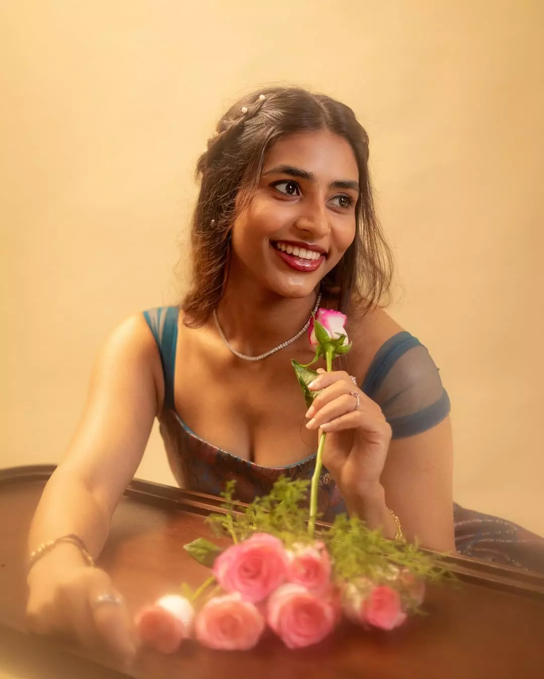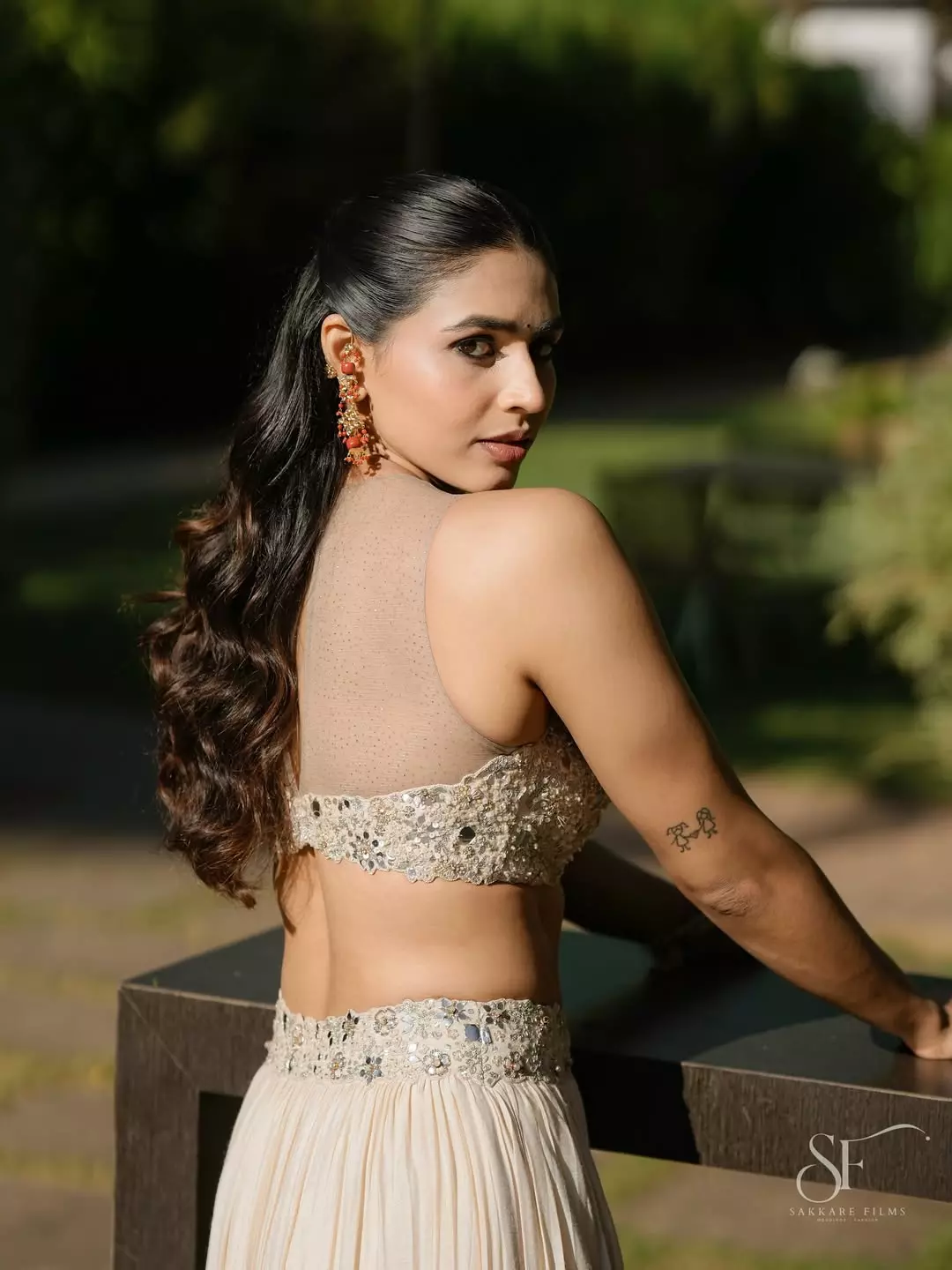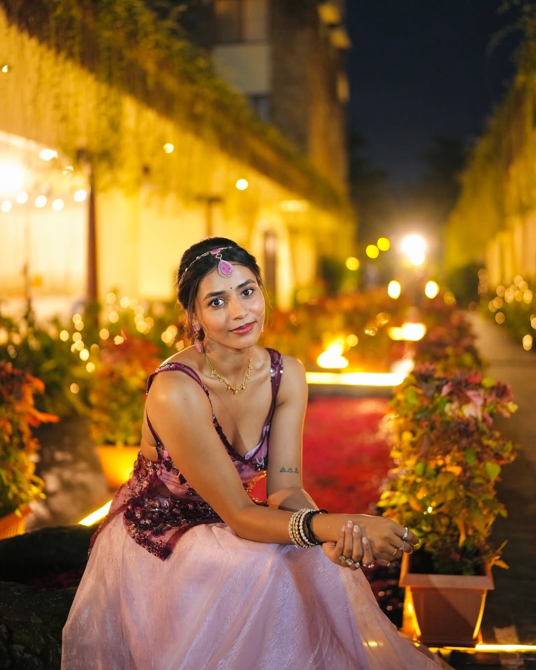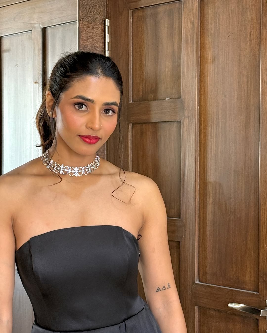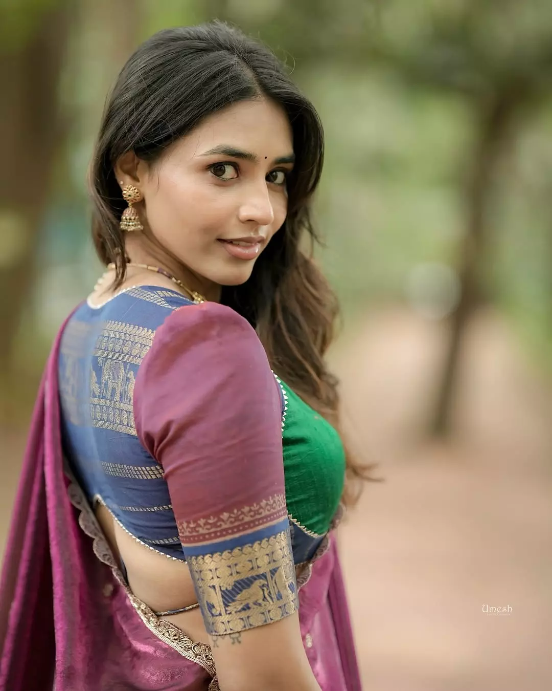 Sapthami Gowda is pure midnight magic in this deep teal velvet pre-draped saree that drapes like liquid luxury. The bold backless blouse and that effortless side profile glow turn a simple moment into high drama. This pre-draped saree was a blessing! Effortless elegance with a daring twist – Sapthami owns the frame completely. Thank you @sithara_kudige @inekas.reflection @studiotodoorllc