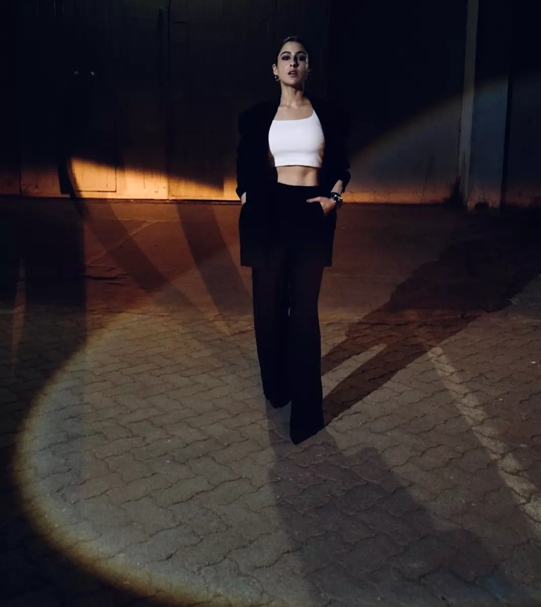Sara is also making a mark with her bold fashion choices. In one of her recent Instagram pictures, she wore a black coat with matching pants. She paired it with a white crop top. Her look was simple yet powerful. Her hair was tied back neatly and she wore stylish accessories on her wrist. The lighting in the photo created a dramatic effect and she looks classy in the pics.