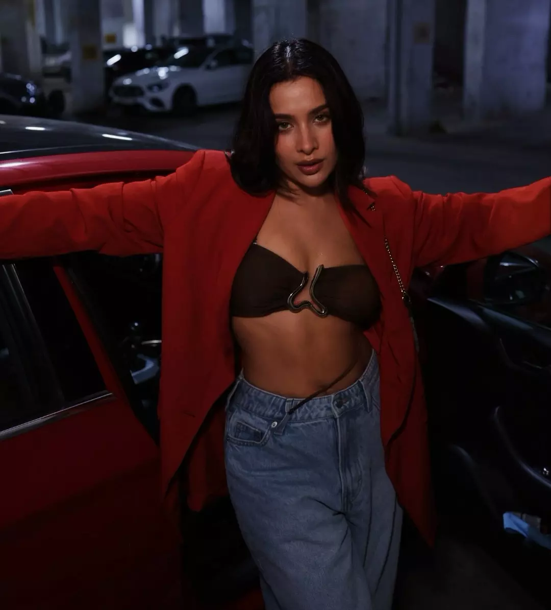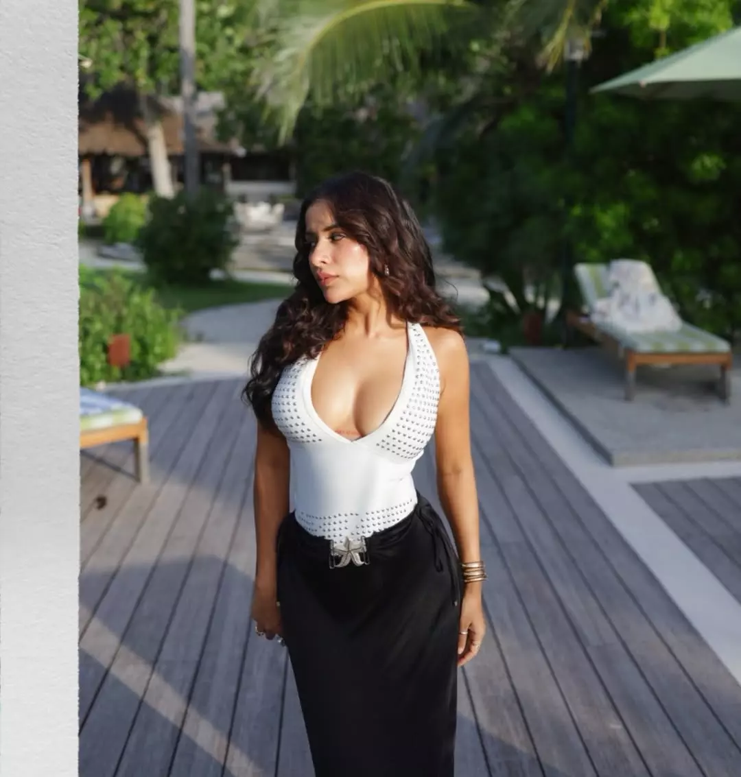 She looked very pretty and confident in a white halter-neck top with small shiny designs, paired with a black maxi skirt. Sara Gurpal amazes with wavy hair, light makeup, and simple jewellery, giving perfect holiday vibes to her cult fans on Instagram.