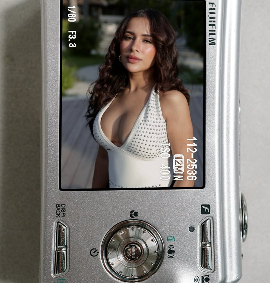She poses near a beach and trees, with one shot by an outdoor dining setup. Some pictures have a retro charm. Overall, all the pictures are breathtakingly hot, no doubt.