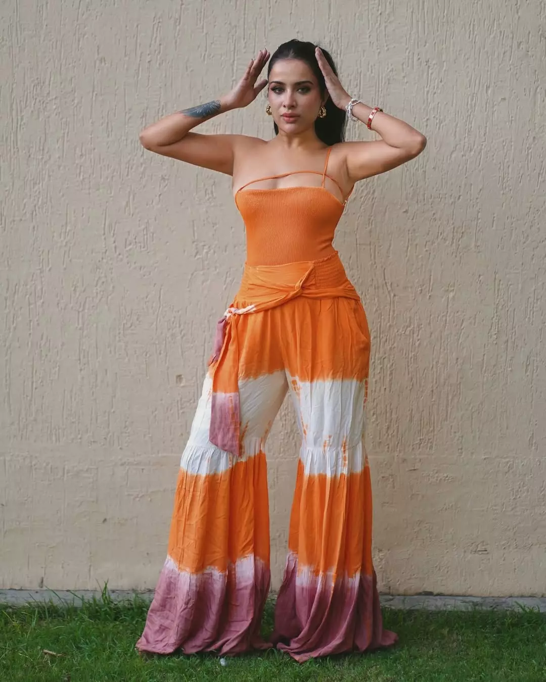 Sara Gurpal looks effortlessly stunning as she strikes a pose in this chic street-style shot. Her bold outfit, stylish shades, and confident vibe perfectly capture her fashion-forward charm. #Sarakehndi deleting in few hours 🙂‍↔️ adds a playful touch to the moment, making this look even more memorable.