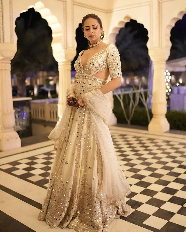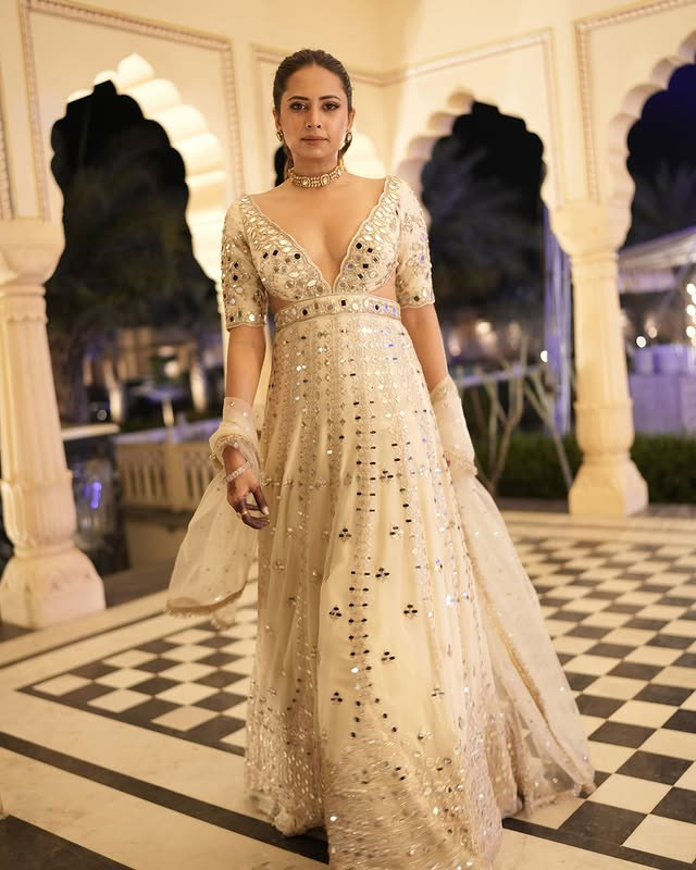 In the post, Sargun mentioned she is wearing a beautiful dress by @gopivaiddesigns and was styled by @devs213. Her elegant dress, glowing makeup and minimal jewelry are perfect and she also shared solo pics.