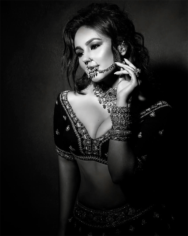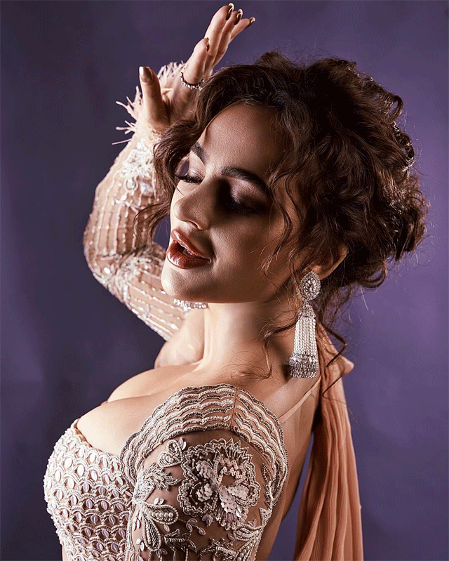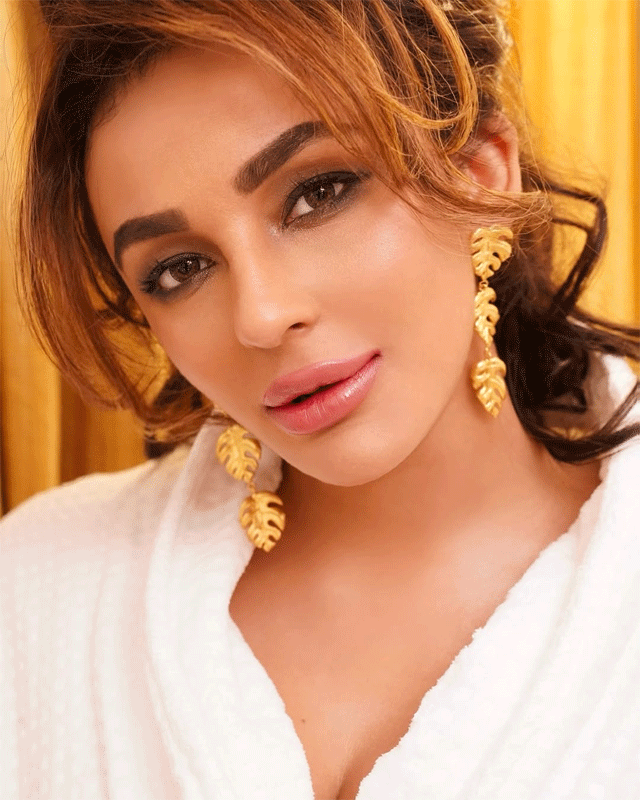 Seerat Kapoor radiates understated elegance in this captivating portrait, where her statement gold earrings take center stage.