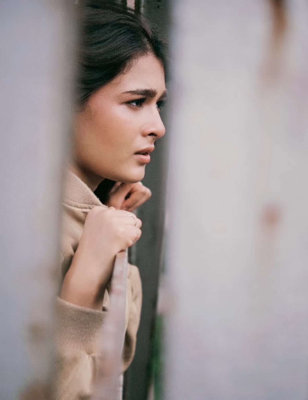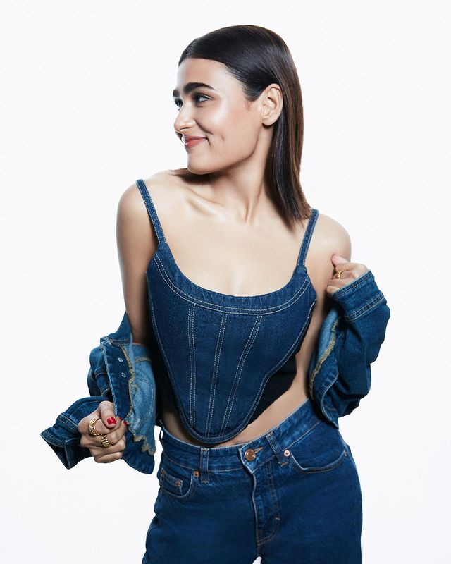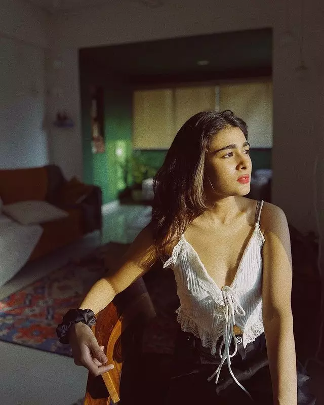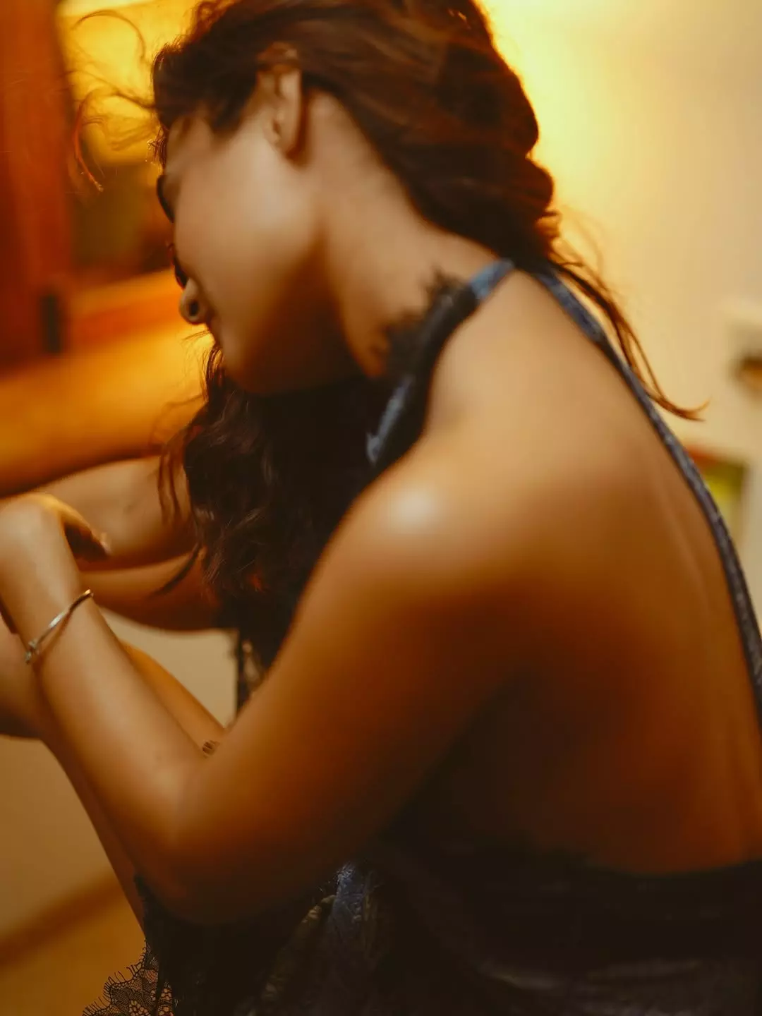 Basking in warm golden-hour light, Shalini Pandey exudes sensuality and effortless charm in her latest photoshoot. From a sultry over-the-shoulder pose with one hand running through her tousled hair to a graceful back view highlighting dramatic shadows and intricate lace details on her blue-black outfit, the images capture her bold, magnetic presence and glowing skin.