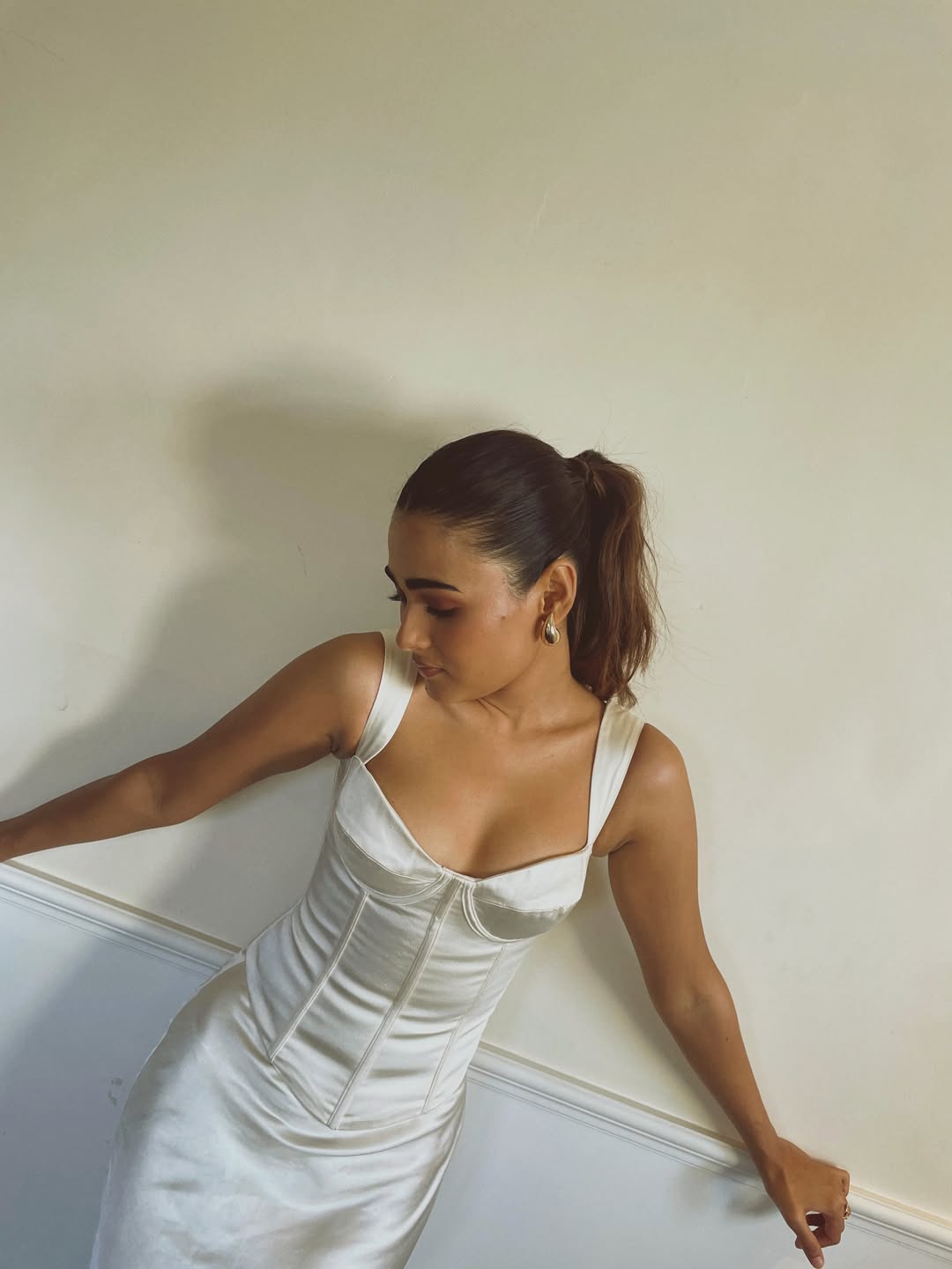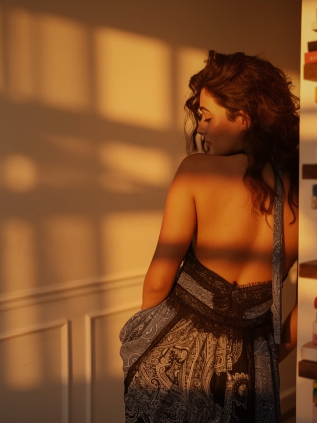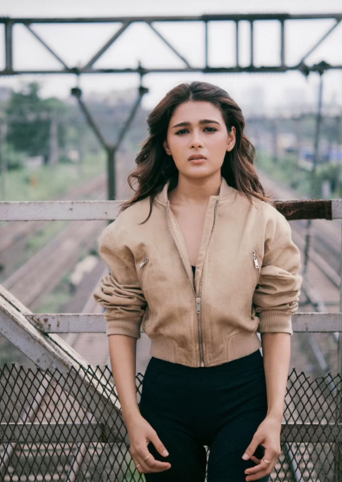 Basking in warm golden-hour light, Shalini Pandey exudes sensuality and effortless charm in her latest photoshoot. From a sultry over-the-shoulder pose with one hand running through her tousled hair to a graceful back view highlighting dramatic shadows and intricate lace details on her blue-black outfit, the images capture her bold, magnetic presence and glowing skin.