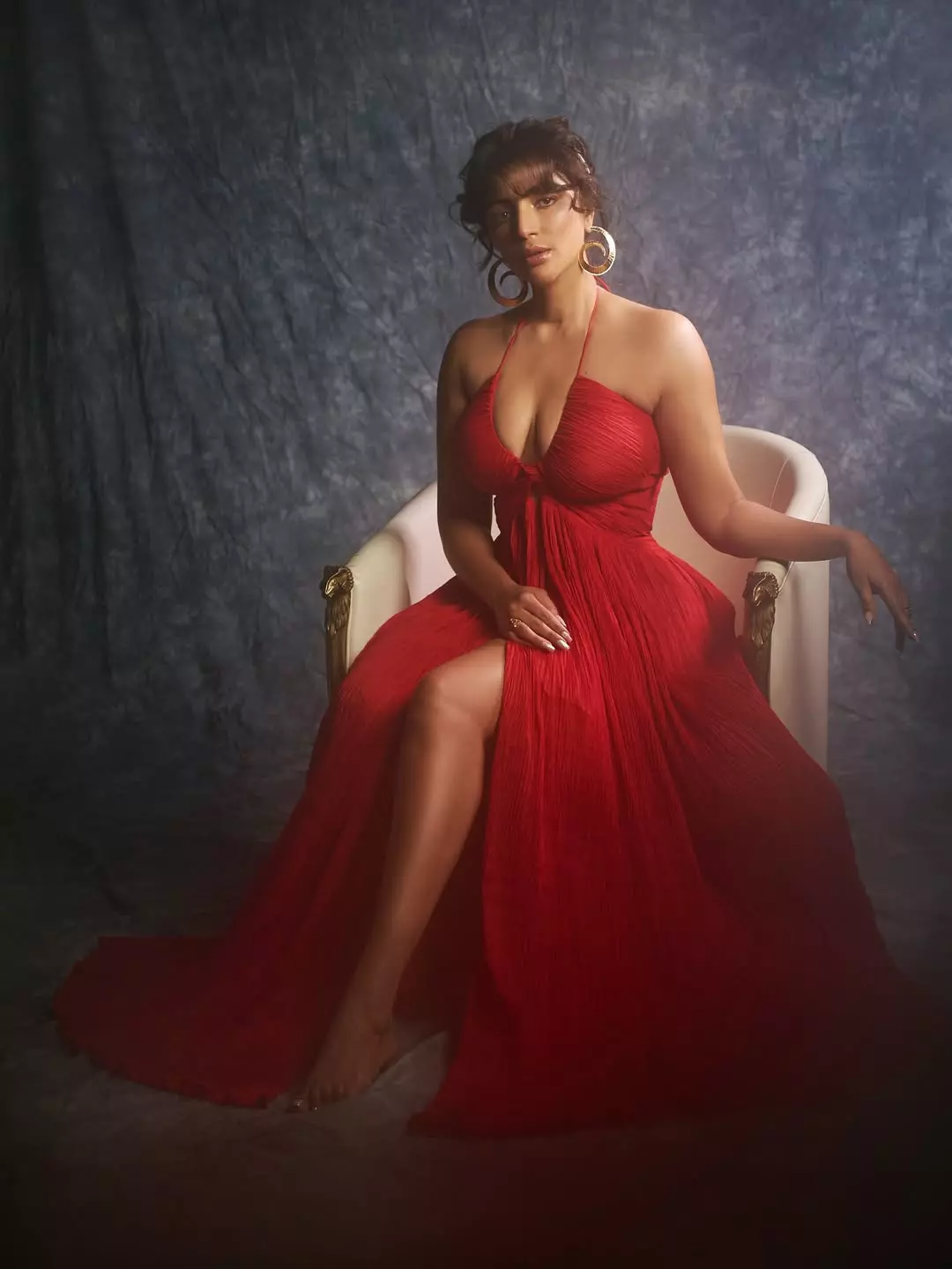 By: Tupaki Gallery Desk | 8 Oct 2025 1:07 PM ISTShama Sikander shared a photo on Instagram. She wore a red dress and posed gracefully on a chair. Her caption read, “Every love song was secretly written about her.”