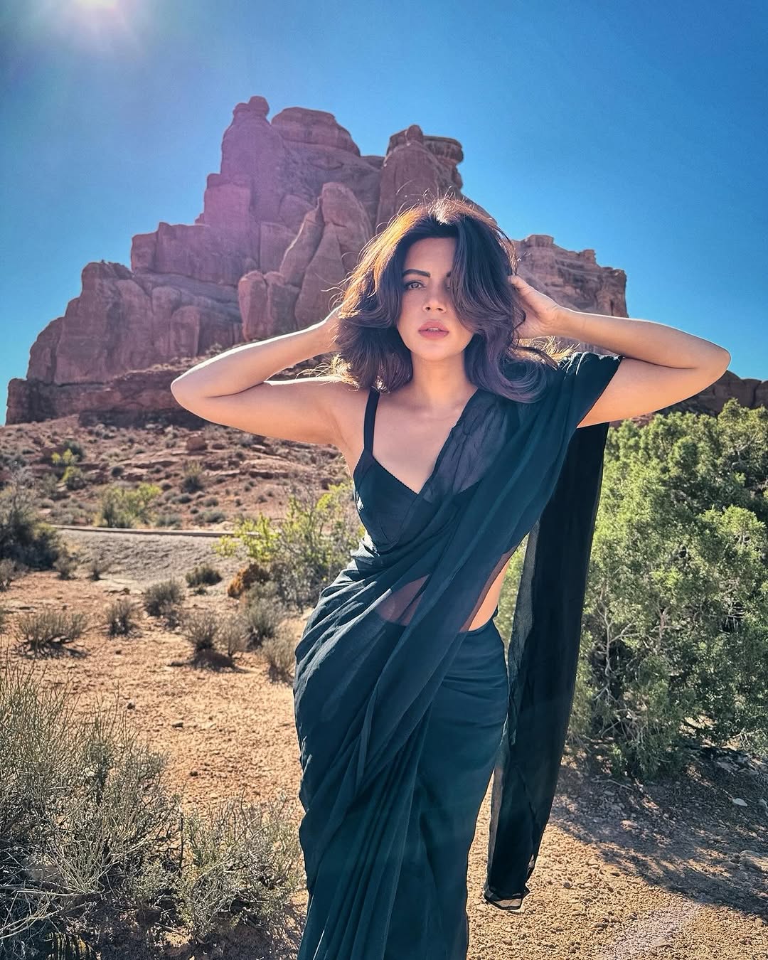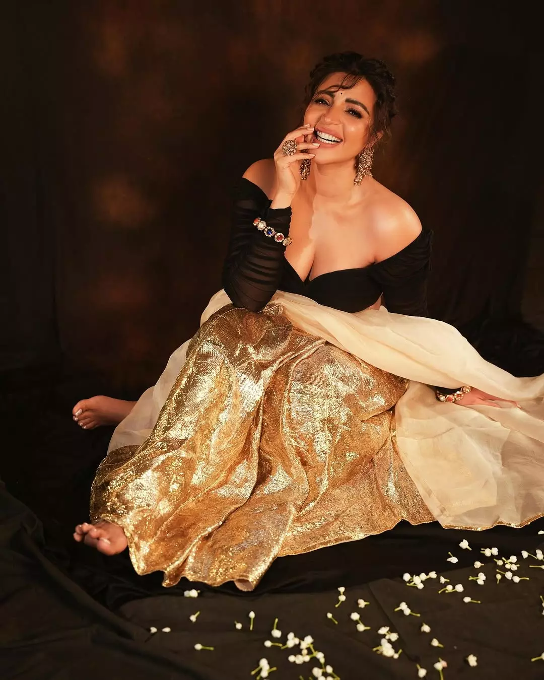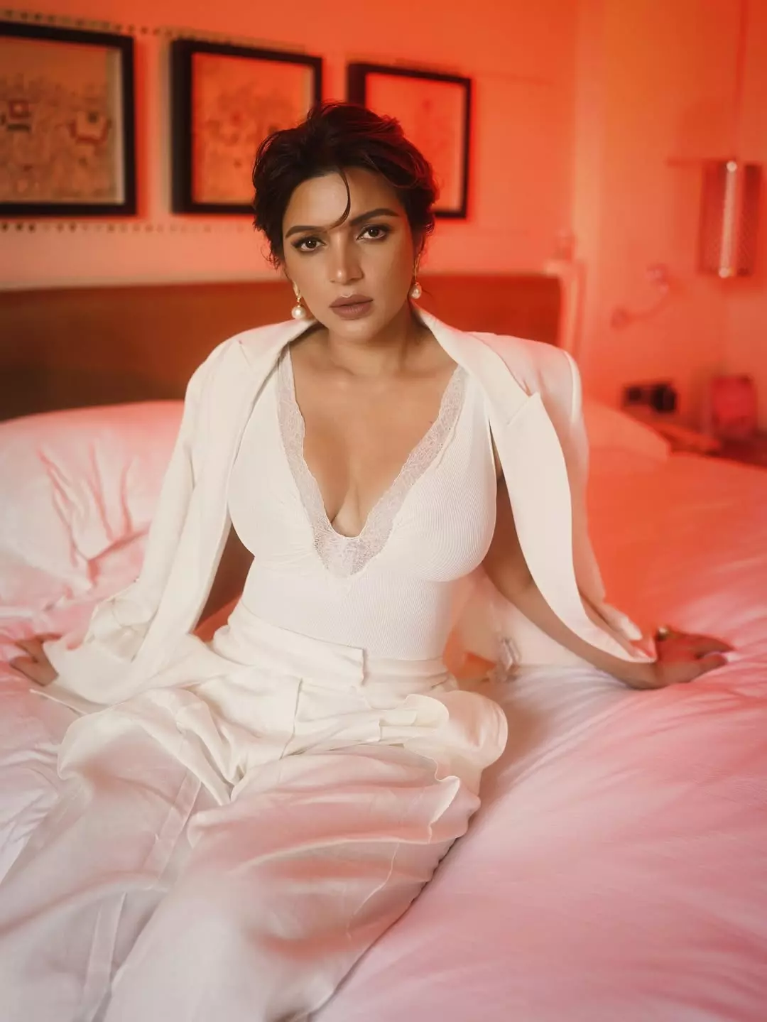 In this striking portrait, Shama Sikander commands attention with her bold, glamorous presence.
