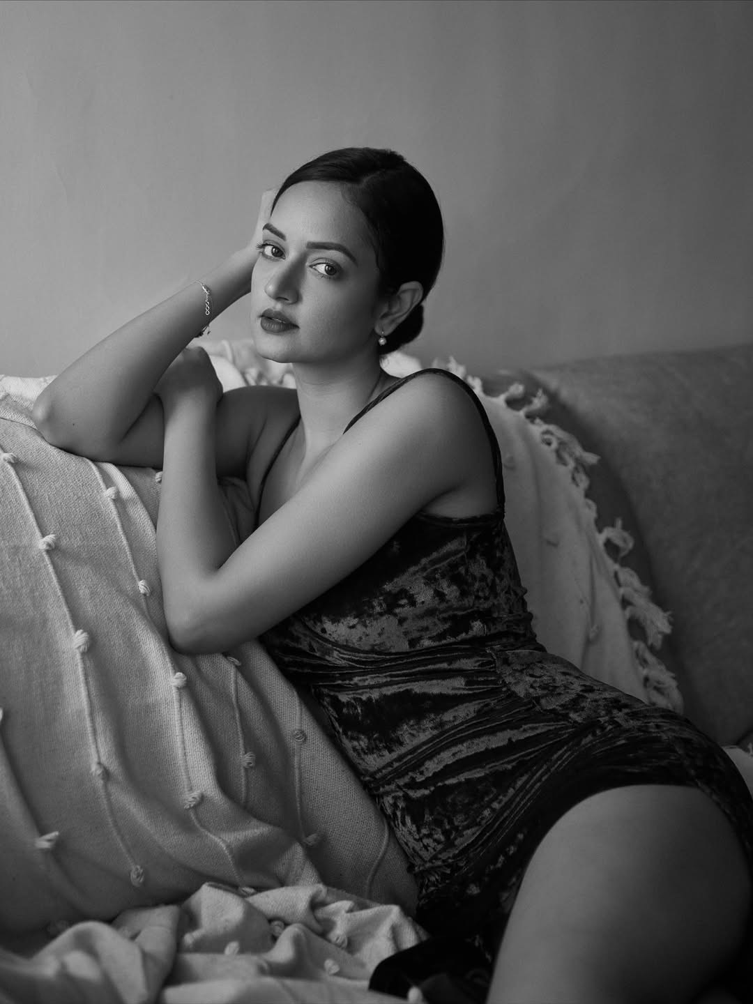 Couch and Curves: Shanvi’s Black and White Seduction