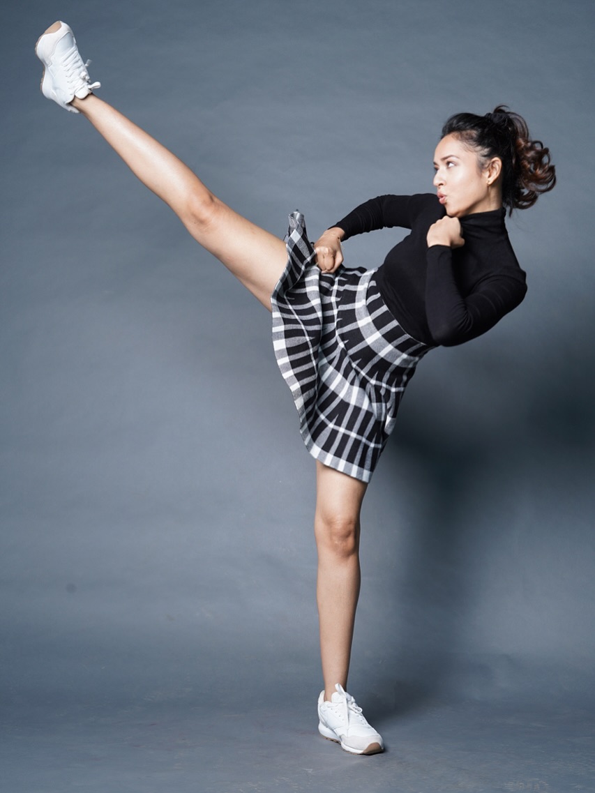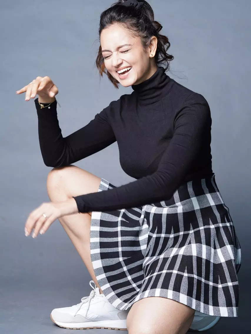 Actress Shanvi Srivastava shared a striking photo on her Instagram captioning it: "Owwa Owwa!!" She wore a golden thread work dress with v neck.