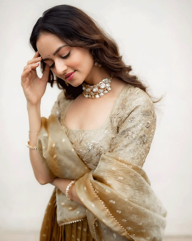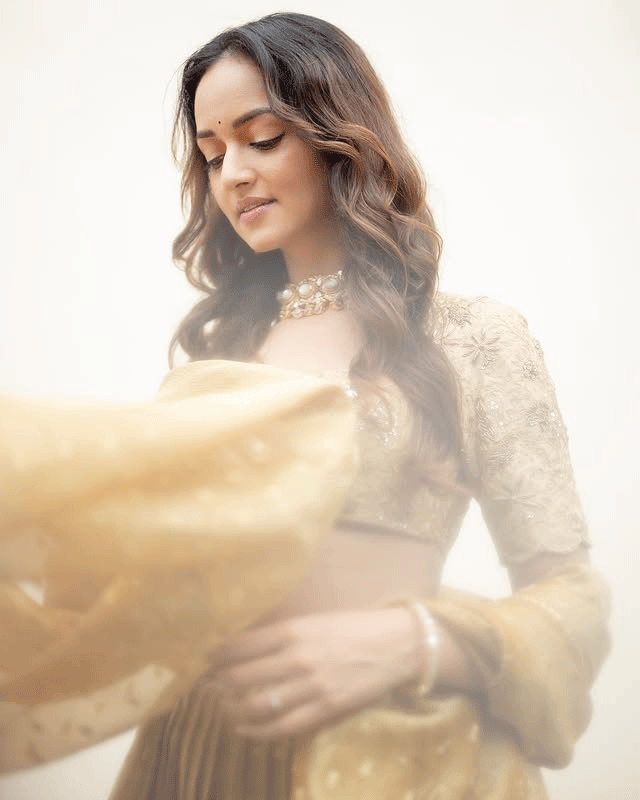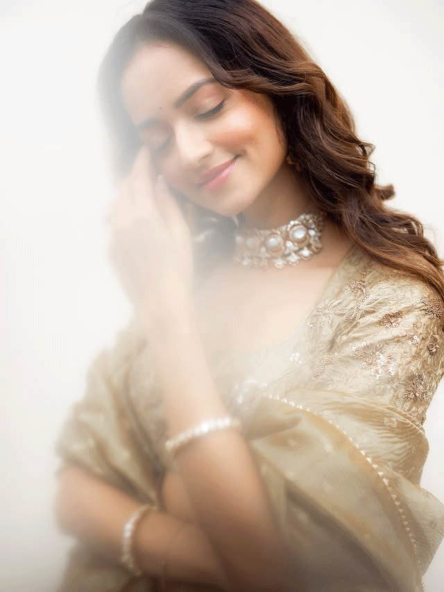 Actress Shanvi Srivastava recently shared a picture on Instagram that’s winning hearts. She is seen dressed in an elegant golden dress with soft makeup, pearl choker and her signature graceful smile. The caption reads, “In the curve of her smile and the stars in the eyes… is everything what she wants to say.”