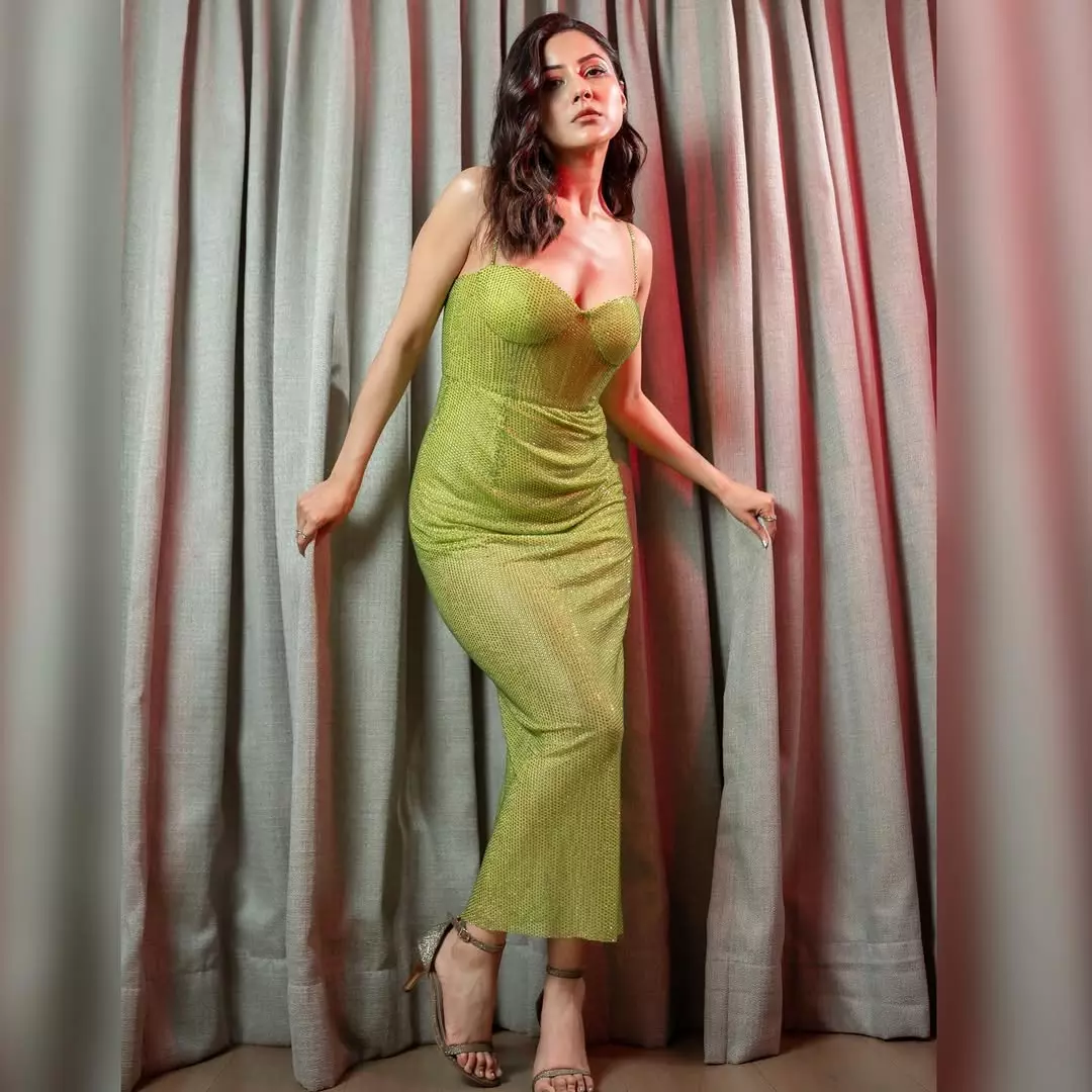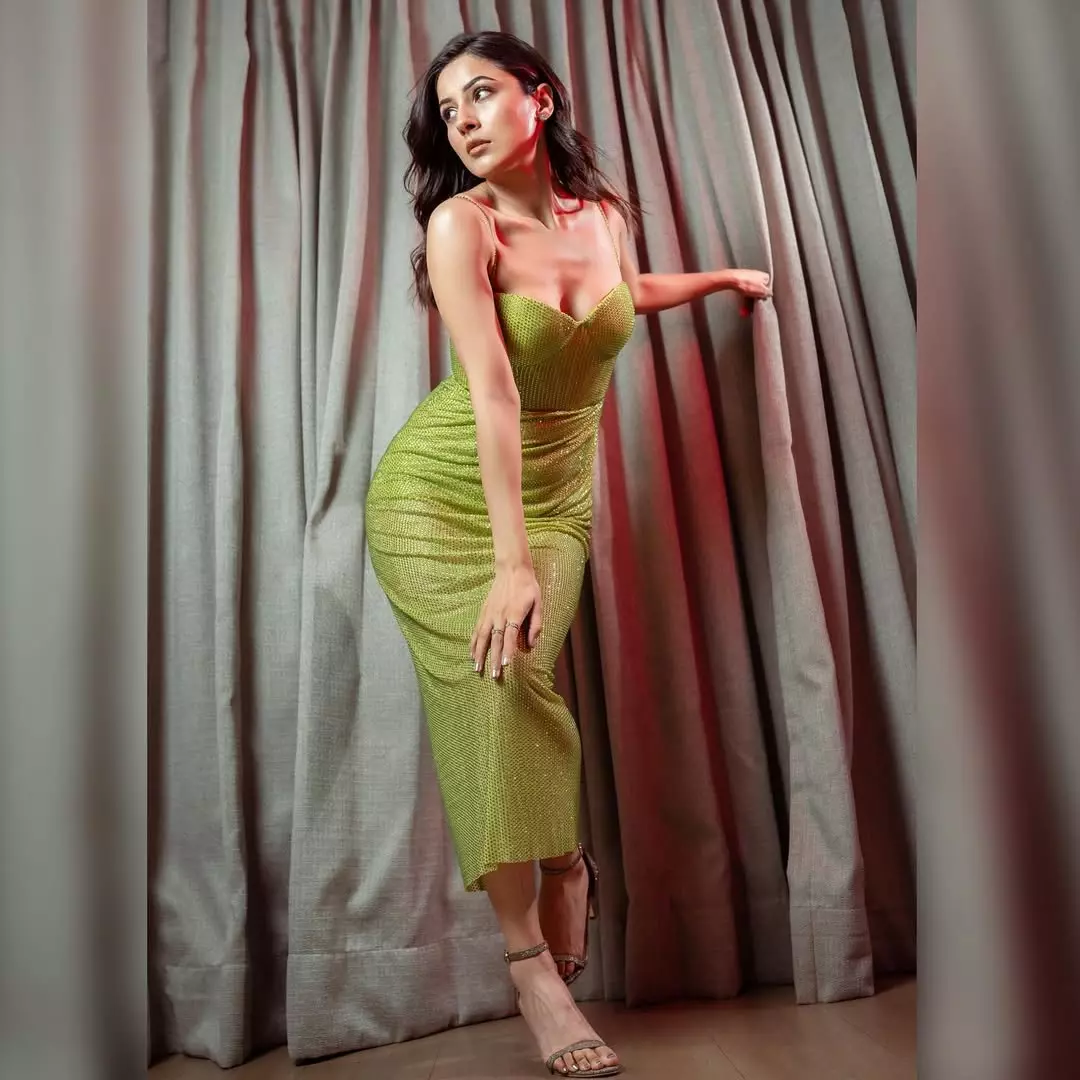 Shehnaaz Gill always keeps her fashion playful. She shares new photos and videos often. Each one brings something new for her fans. In one photo, she wears a sparkly dress with short sleeves. In another post, she is seen in a bright pink and green traditional dress.