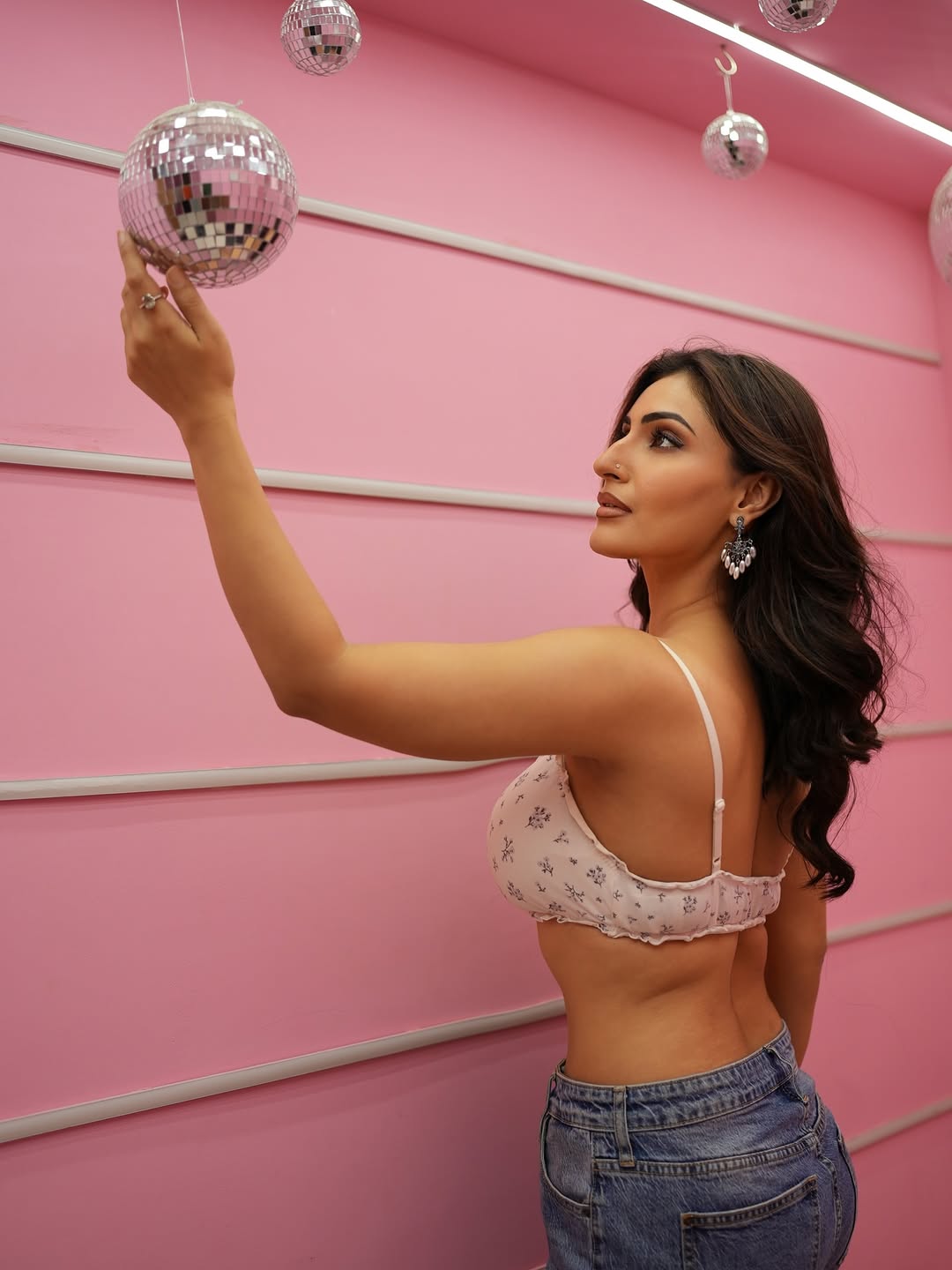 Shivangi Verma who is loved for her vibrant personality and stylish looks once again grabbed attention with her latest Instagram post. In the picture, she is seen striking a chic pose against a pink backdrop, dressed in a floral crop top paired with high-waisted denim jeans. Her caption read, “bubblegum conspiracy 💗.”