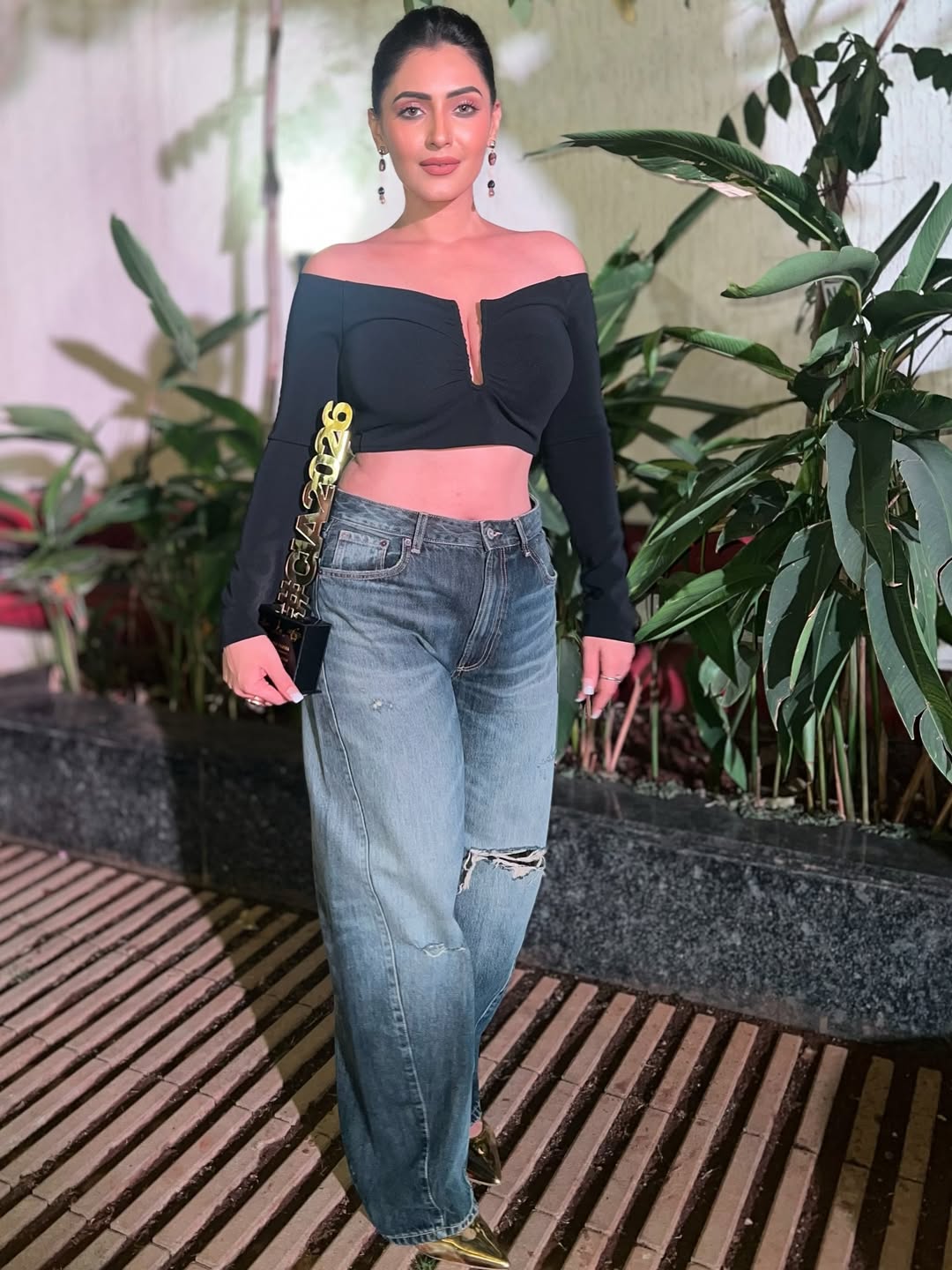 The meticulously tailored black outfit accentuated her silhouette with grace, while subtle detailing added a refined, modern touch. With minimal accessories and an air of effortless confidence, Shivangi let the ensemble speak for itself, turning fashion into a statement of achievement—a night where years of dedication and hard work shone as brightly as the awards themselves. 🌟