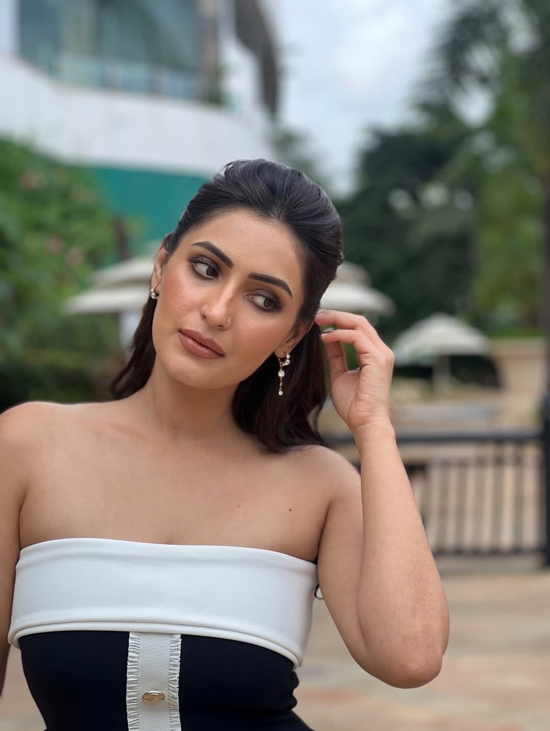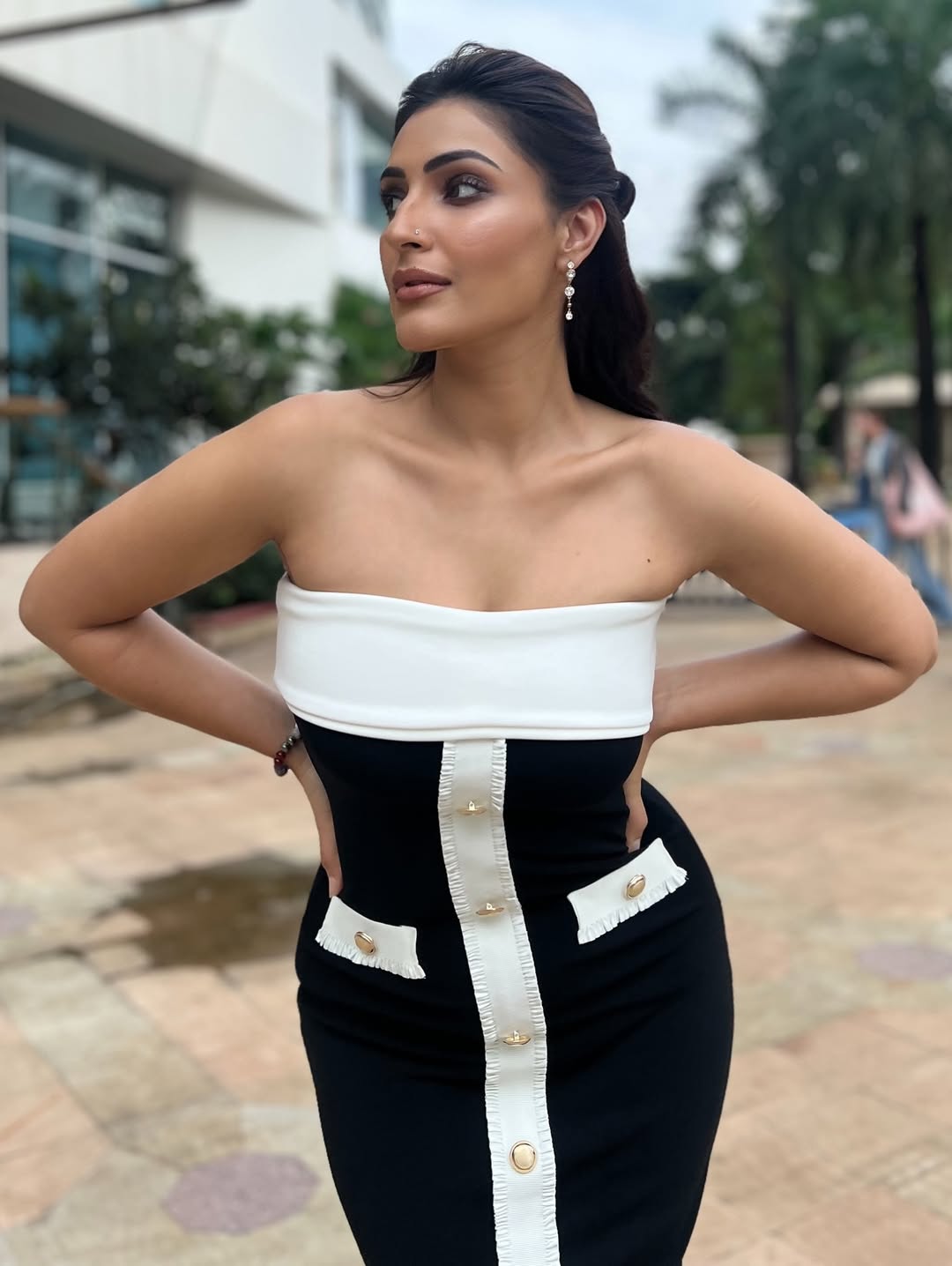 By: Priya Chowdhary Nuthalapti | 13 Aug 2025 10:45 AM ISTShivangi Verma exudes modern sophistication in this chic monochrome outfit. Dressed in a strapless black and white ensemble, she embraces minimalist fashion with maximum elegance. The sleek design, highlighted by a central buttoned detail and soft fabric texture, perfectly contours her silhouette, showcasing her refined fashion sense. Her look is elevated by pearl-drop earrings, soft curls cascading down her shoulders, and flawless makeup that highlights her radiant glow.