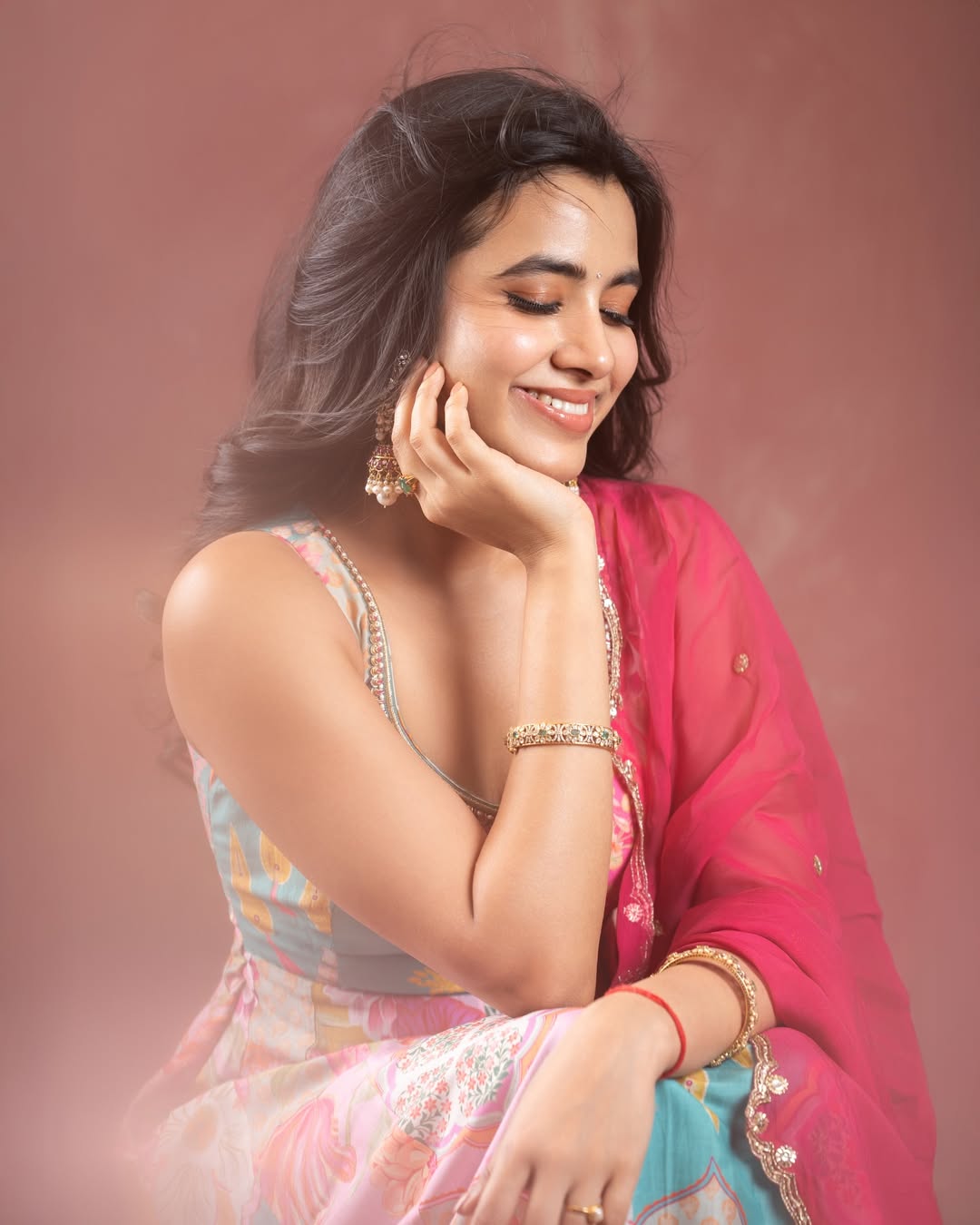 In her recent Instagram post, Shivani looks graceful and cheerful. She is seen smiling warmly, wearing a beautiful traditional outfit in soft pastel shades.