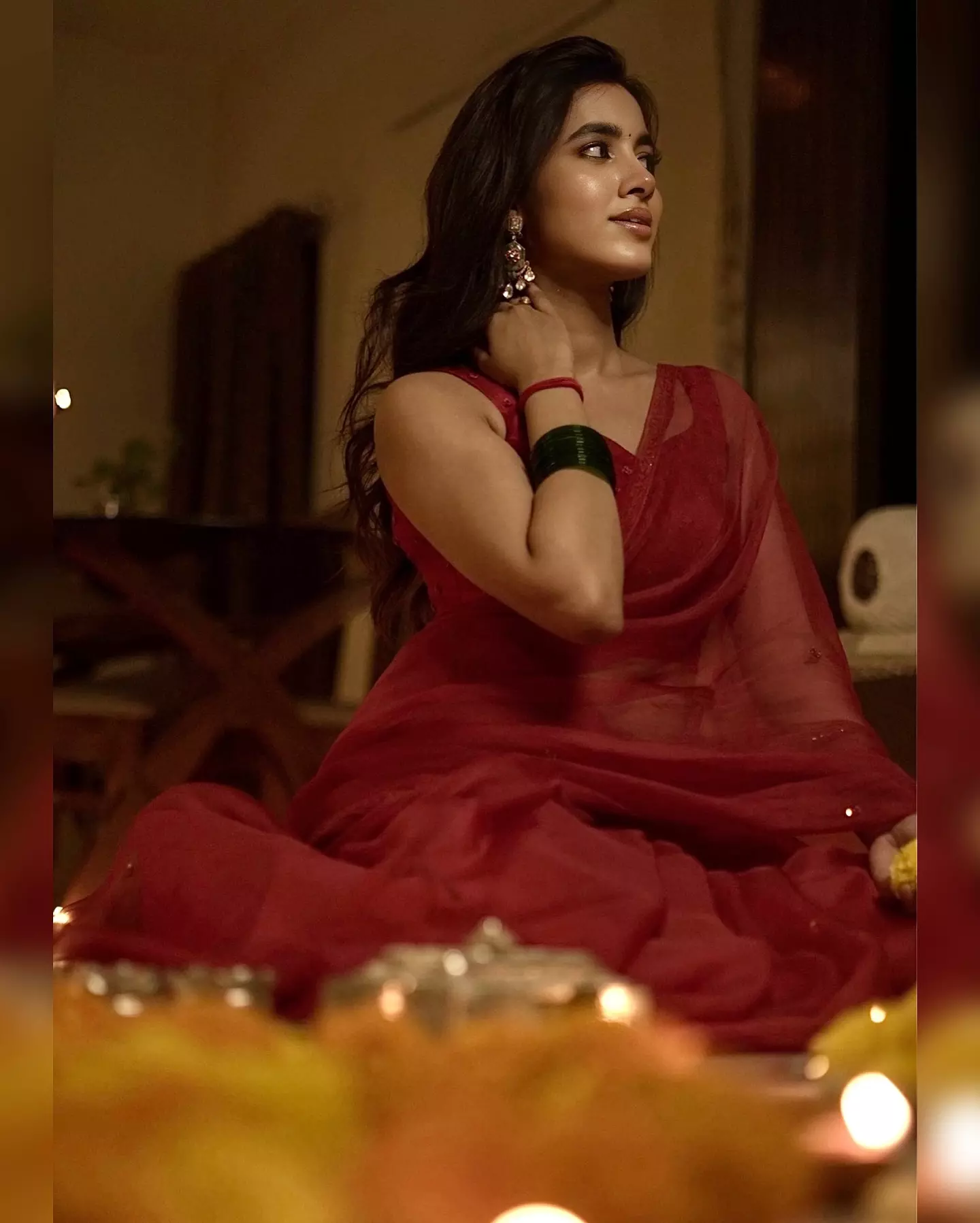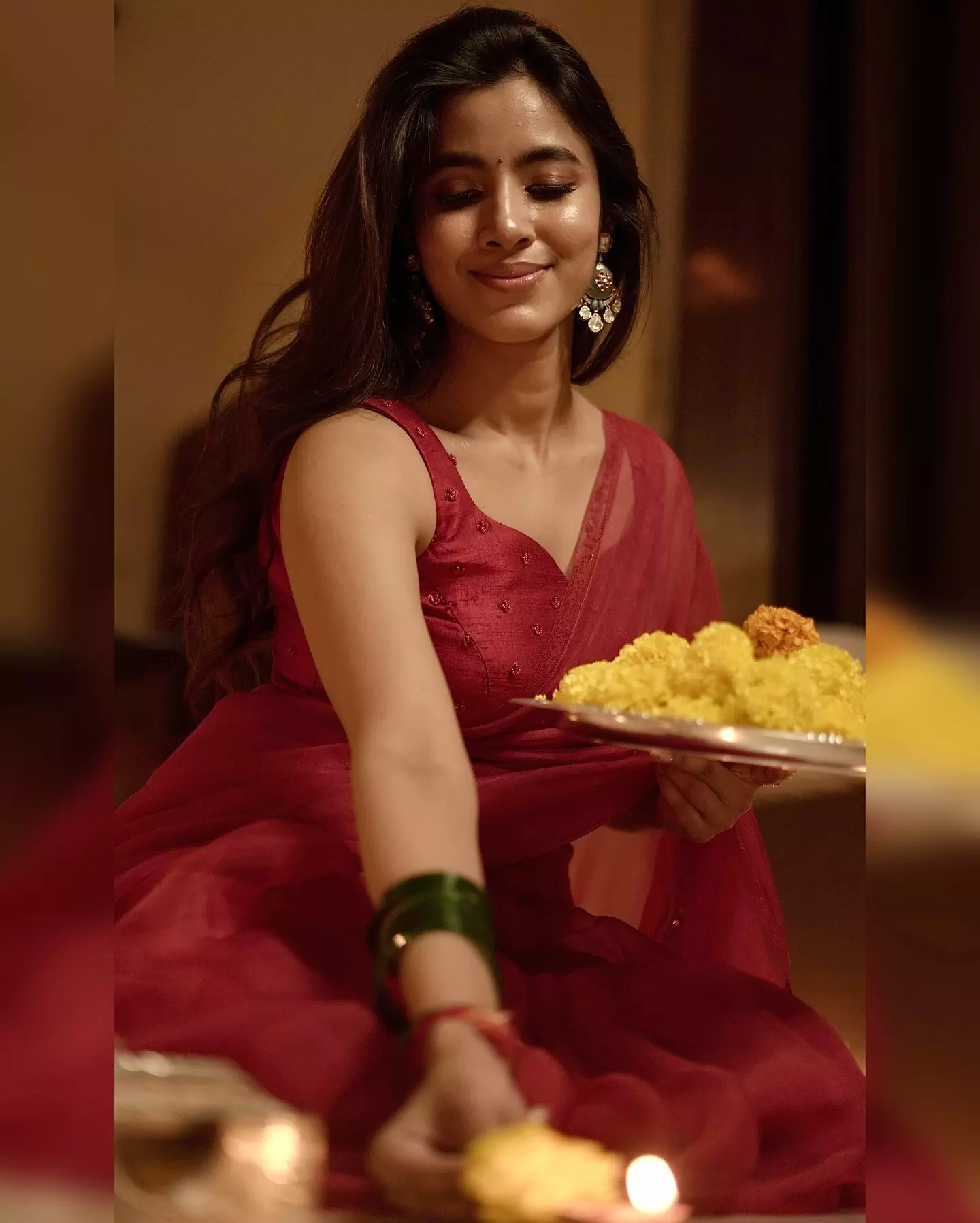 Actress Shivani Nagaram embraced the festive spirit with grace and elegance, donning a stunning traditional saree for Diwali celebrations. Styled to perfection by @sreedevitetali with assistance from @sindhuja_312_dasari, Shivani's look was both regal and radiant. Her outfit by @priyakantamthelabel beautifully blended tradition and modern charm, while jewelry from @thesilverswitch added a touch of ethnic glamour. Captured effortlessly through the lens of @absolutelyrahul, her festive ensemble became an instant hit among fans.