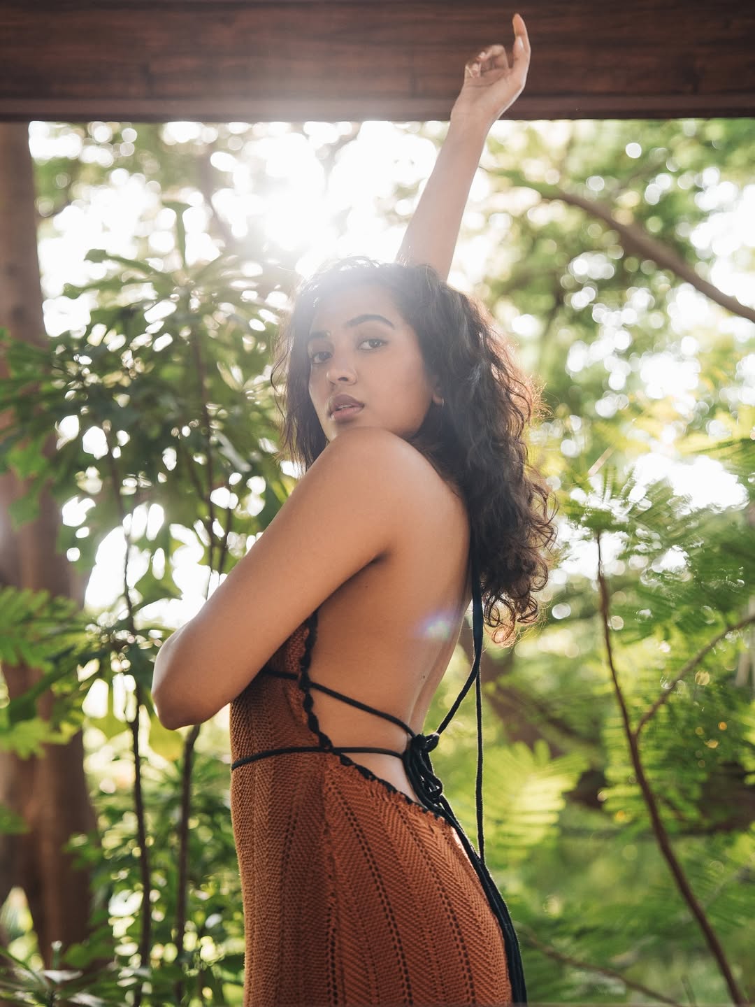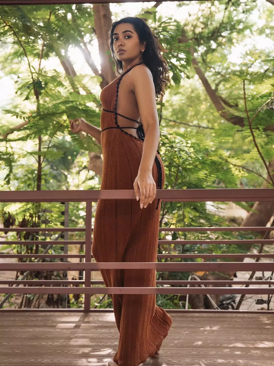 Draped in a deep brown ensemble, Shivathmika Rajashekar radiates a blend of modern elegance and classic charm. The rich, earthy shade perfectly harmonizes with her warm skin tone, while the sleek, understated cut of the dress enhances her natural poise. Soft, cascading waves frame her face, and her choice of subtle accessories allows her innate sophistication to take center stage. With a calm demeanor and assur