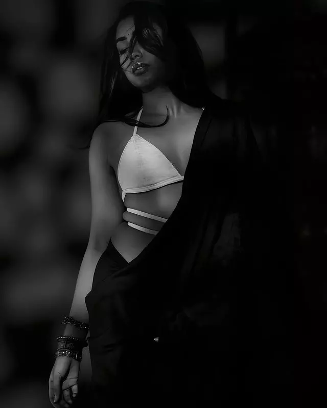In her recent photos, Shivathmika looks stunning in a white steps blouse paired with a black saree, draped with elegance against a dark background. She captioned the pictures "Affair with the moon," adding a touch of mystery and allure to her post.