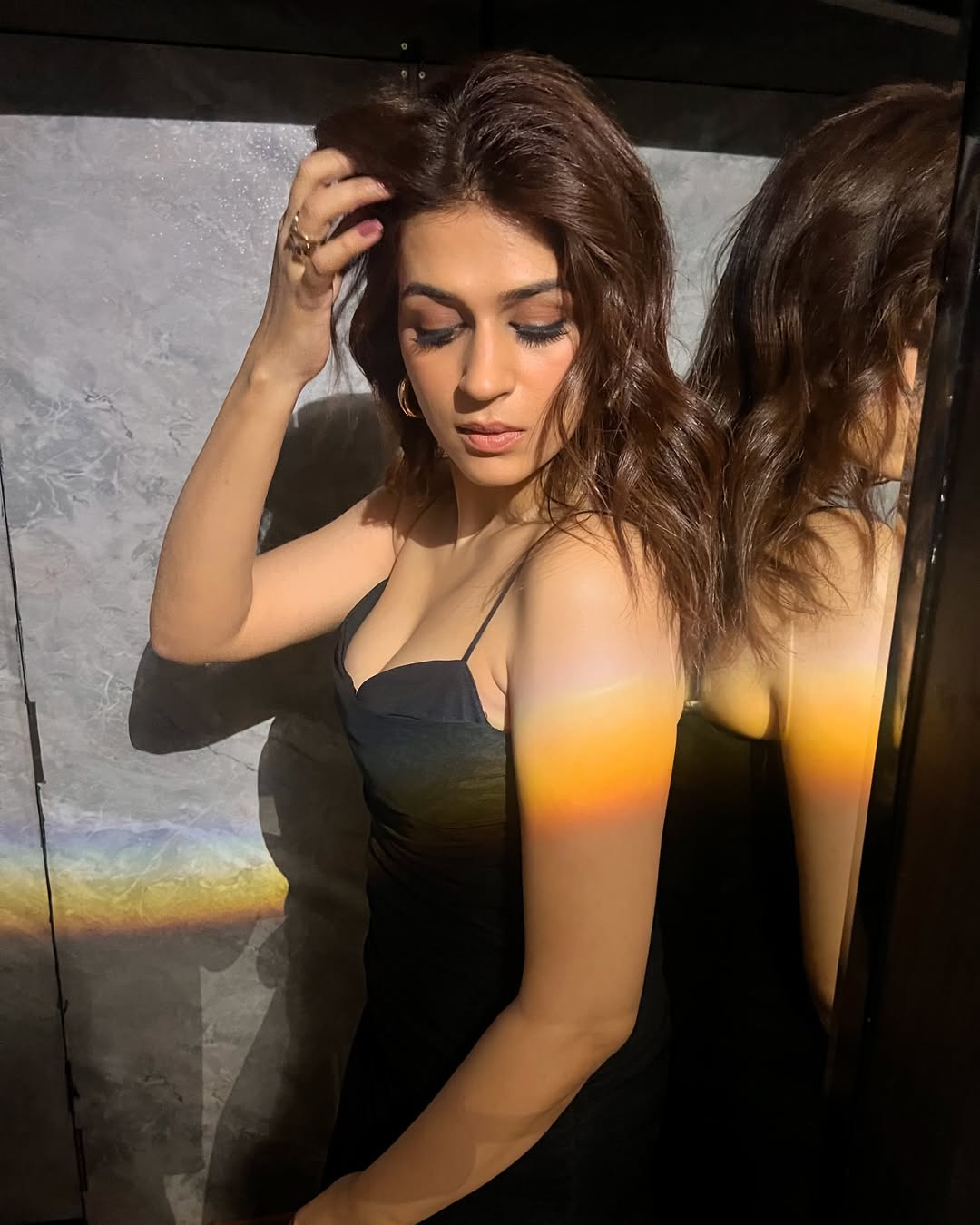 Shraddha Das recently took to Instagram to share a powerful new image. In a black dress against a mirrored backdrop creating a moody and dramatic visual. Her caption, “Dark mode 🎩”, perfectly sums up the vibe of the photo. This image was shot by @rt-_studioz, styled by @ajinkya-_abraham, with makeup by @raashikashetty, and jewellery from @the-_jewel-_gallery.