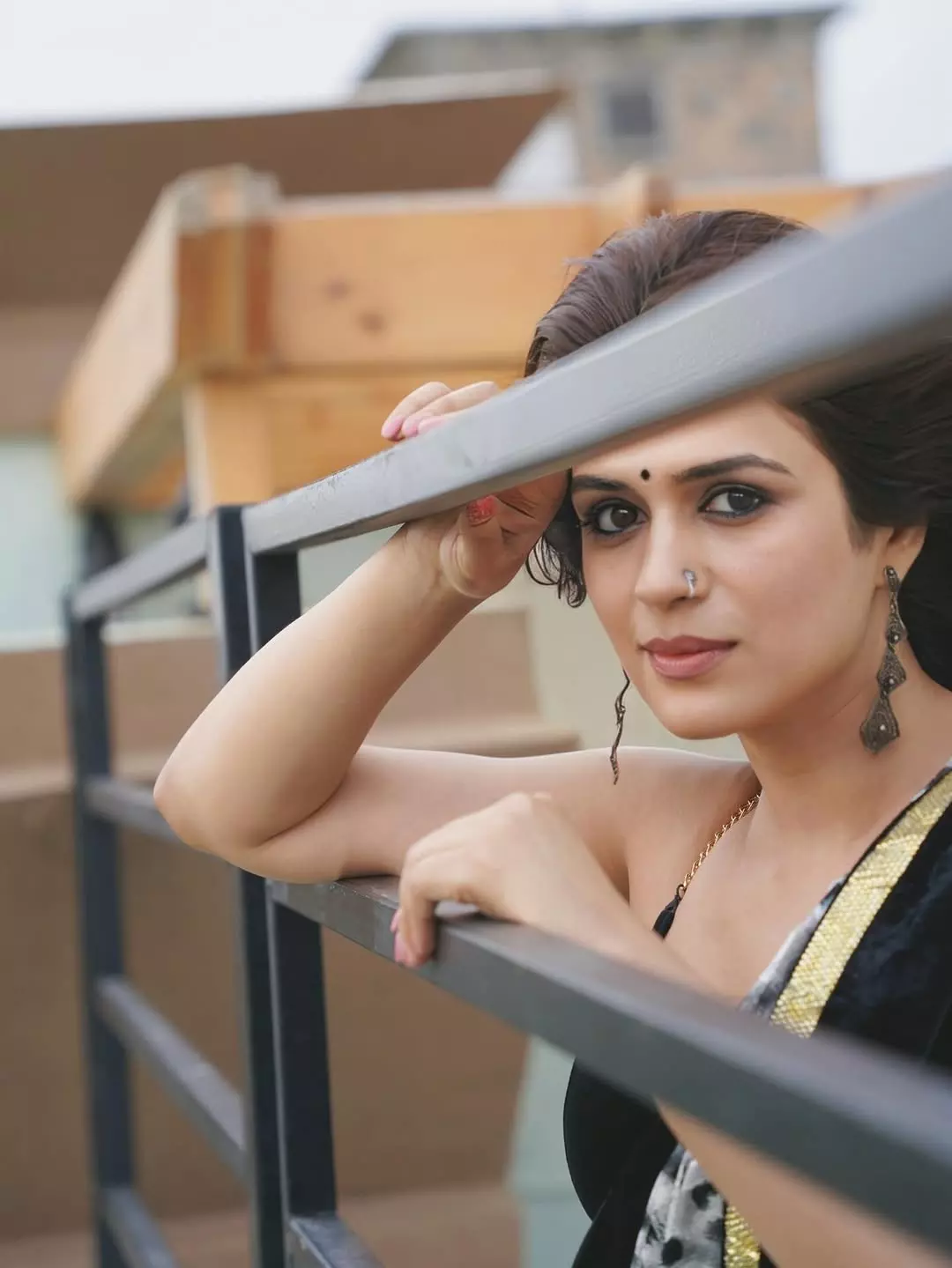 In the post, she appears dressed in a black blouse and a leopard print saree with a golden border leaning gracefully against a railing. Her accessories include long oxidized earrings, a small black bindi and a nose ring giving her a strong ethnic vibe. Her hair is left flowing naturally and the expression on her face adds to the picture’s emotional depth. She captioned the post with just a smiling emoji “☺️”