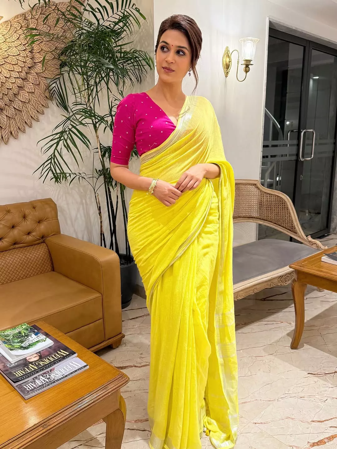 Captured by RT Studioz, the pictures don’t rely on heavy edits or dramatic angles. They let Shraddha take the lead—comfortable, confident, and natural in front of the lens. Ajinkya Abraham’s styling stays light and on-point, letting the saree’s subtle details and sheer texture speak for themselves.