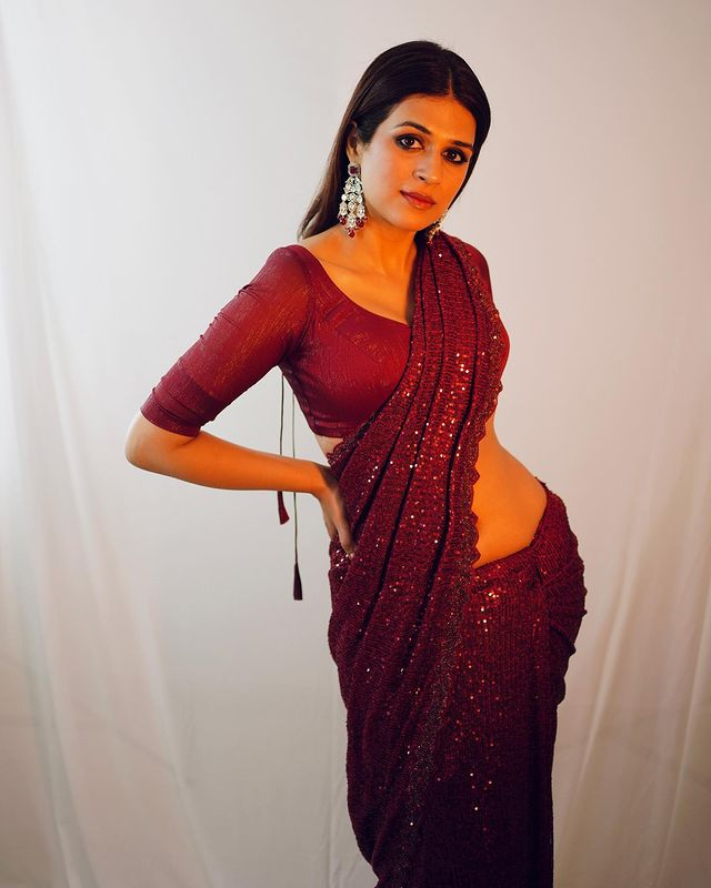 The shimmering border of the saree offered just the right hint of sparkle, elevating the outfit�s elegance. Shraddha kept her accessories minimal, opting for statement silver jhumkas and soft makeup with defined eyes and nude lips. Her loose, windswept hair added a natural yet fierce vibe to the overall appearance.
