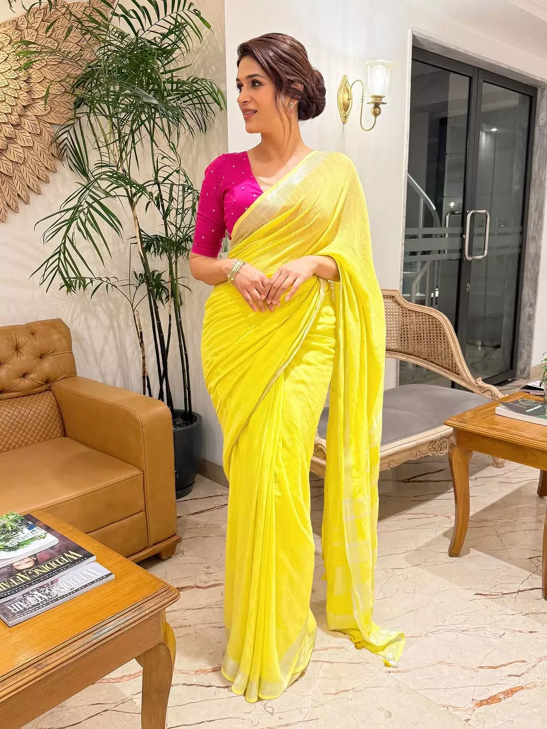 By: Tupaki Desk | 17 July 2025 3:41 PM ISTShraddha Das recently shared adorable picture on Instagram where she is dressed in a vibrant yellow saree paired with a contrasting pink blouse.