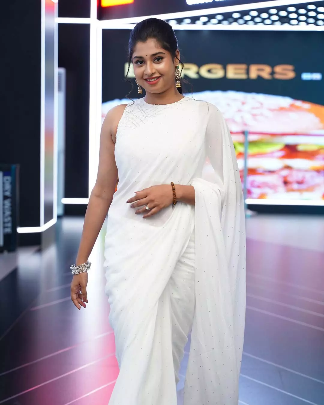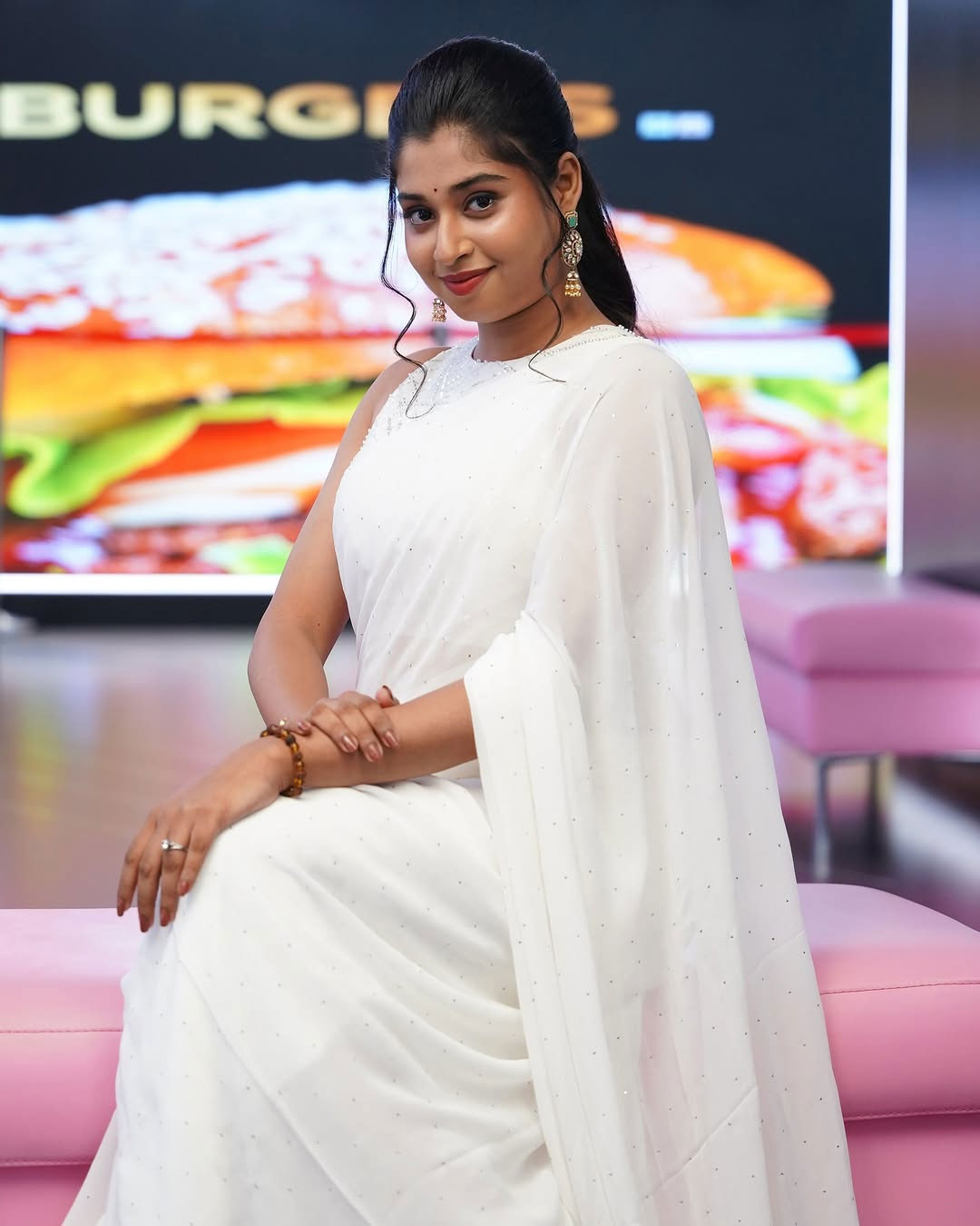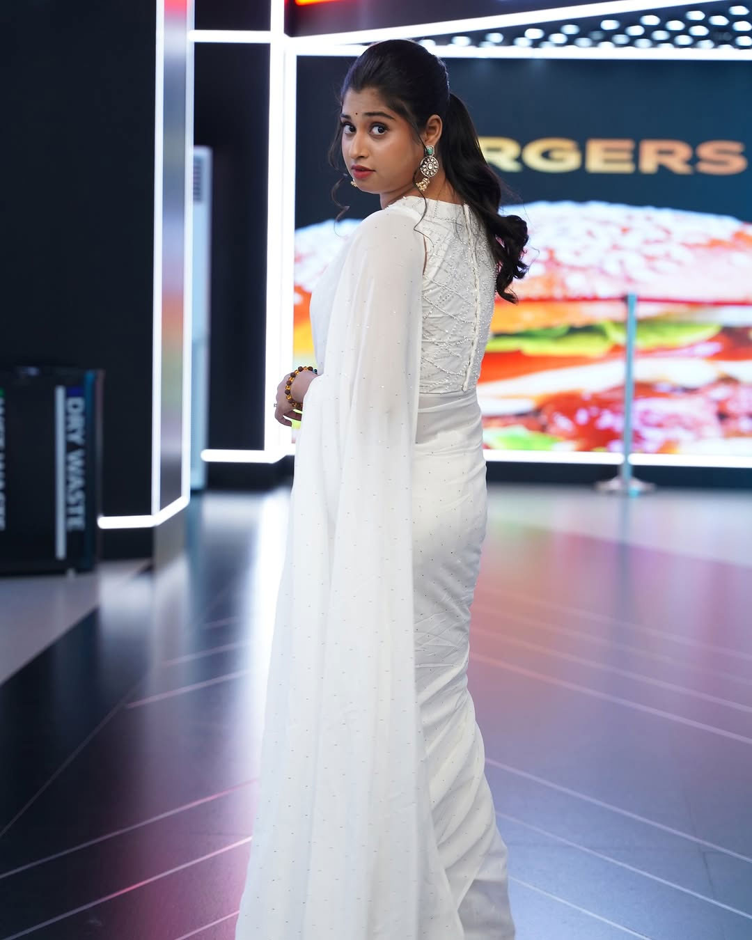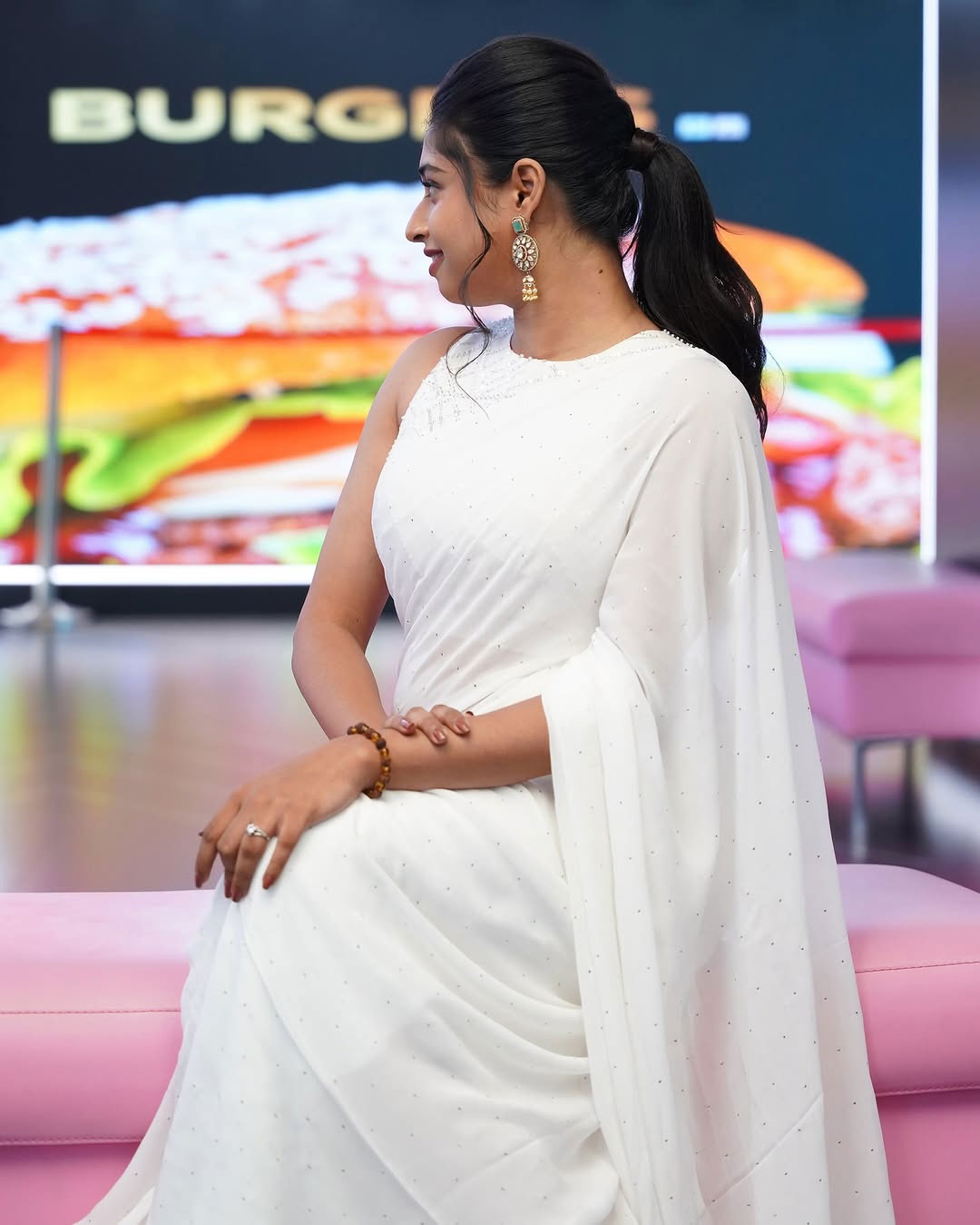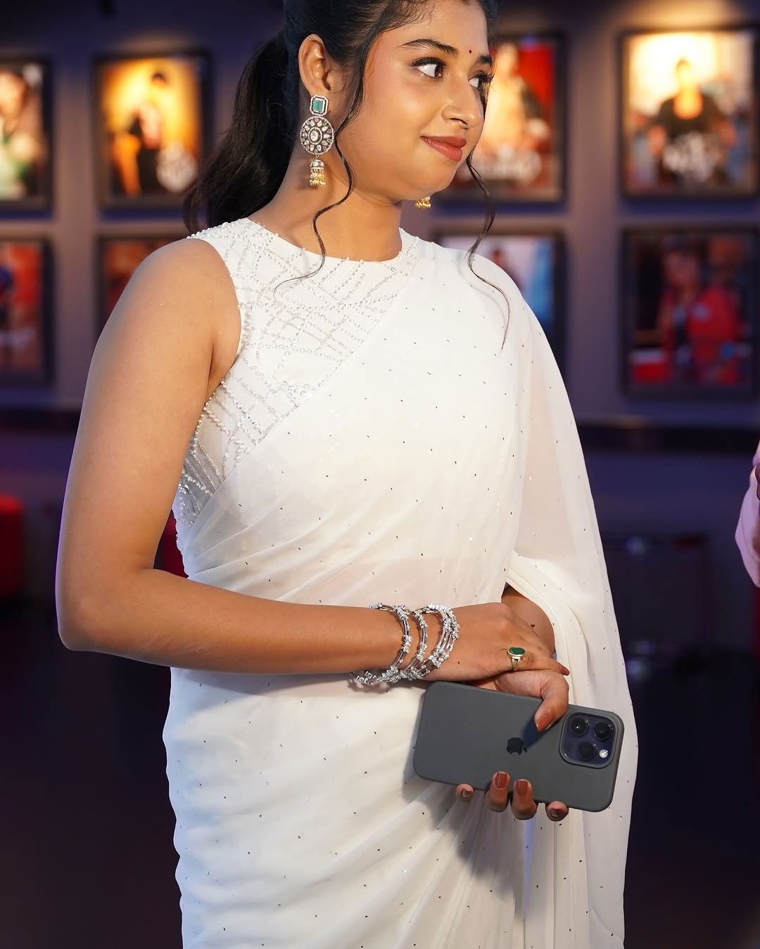 Shrasti Verma recently shared a beautiful picture on Instagram with the caption "🤍🤍", showing her in an elegant white saree. This picture is from an event related to “#Seethapayanam,” a project she is currently a part of.