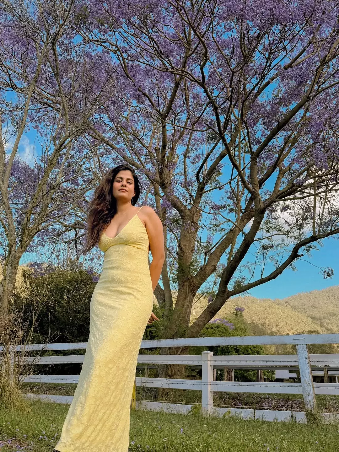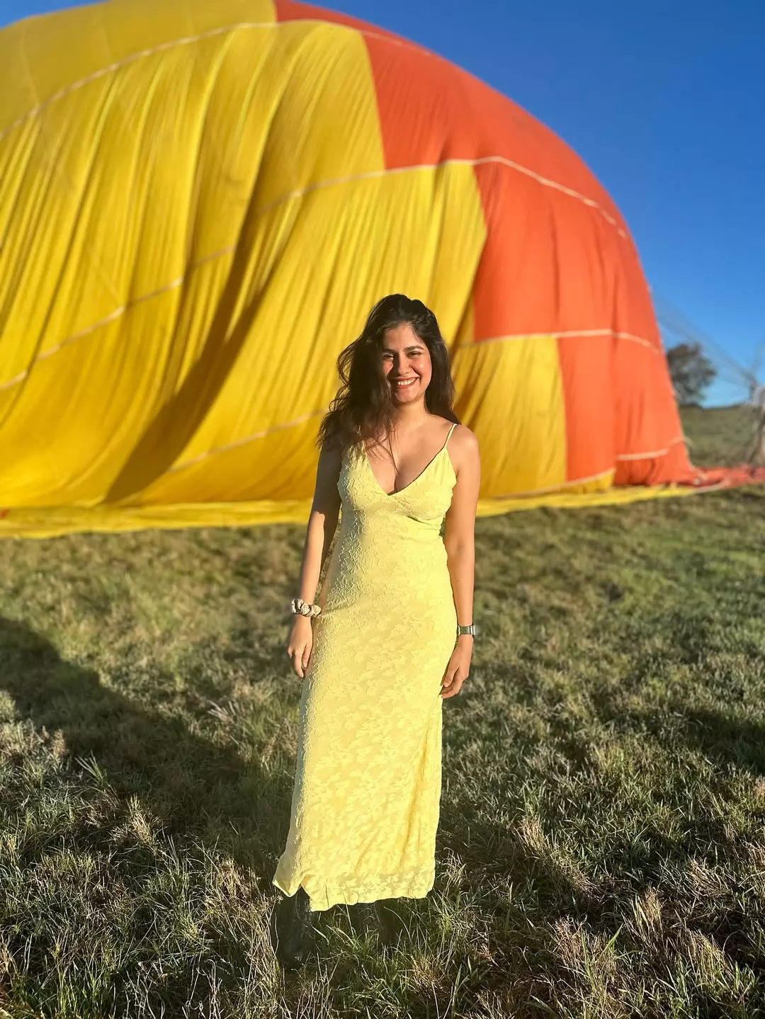 Shreya Dhanwanthary beams pure sunshine on the Gold Coast, her butter-yellow lace dress glowing against emerald lawns as she gently reins in Thor the alpaca, his fluffy mane mirroring her infectious grin. Fresh off a red-eye from Uluru, the Family Man star traded sleep for magic: a dawn hot-air balloon ride, wild kangaroo sightings, and heartfelt reunions under Queensland skies. As she captions: Barely slept flying in from Uluru and woke up at an ungodly hour to have a godly experience! A hot air balloon. That magical sunrise. Seeing Kangaroos in the wild. Feeding the Alpacas (the one with me is Thor) Catching up with old and new faces. All of it was worth the lack of sleep. @australia @queensland @experiencegoldcoast—proof that some adventures are worth every yawn.