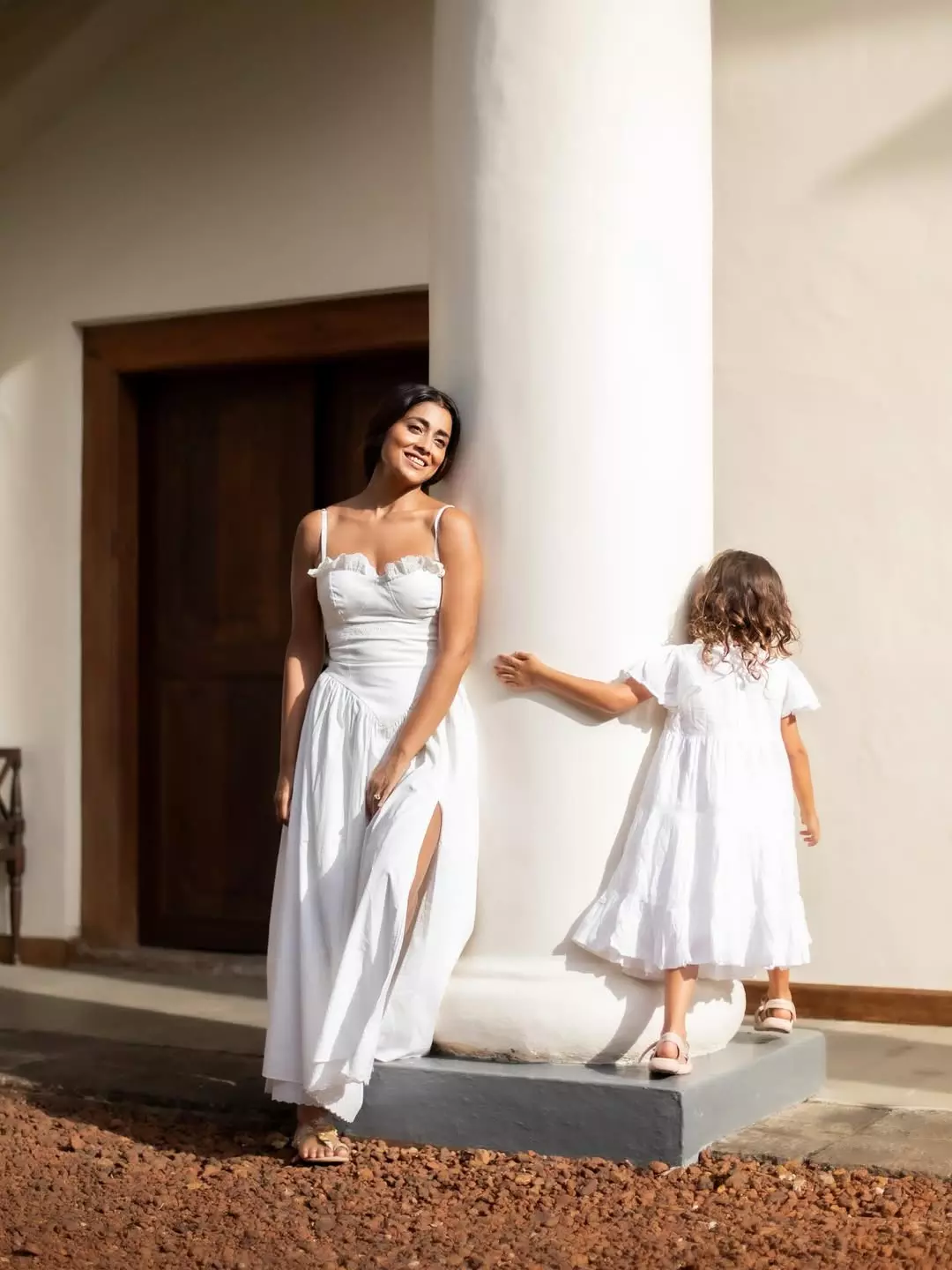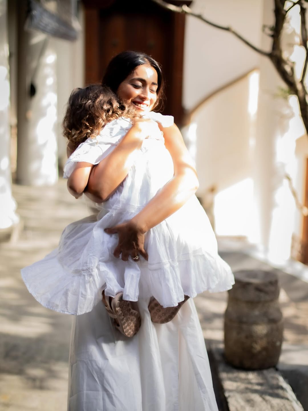 Actress Shriya Saran recently treated her fans to a heartwarming Instagram post. In the picture, Shriya is seen in a beautiful white dress, and her daughter Radha is also dressed in white, making it a truly matching and special moment. Shriya captioned the post: “Special moment celebrating Mirai,” giving fans a glimpse into her joyful family life.