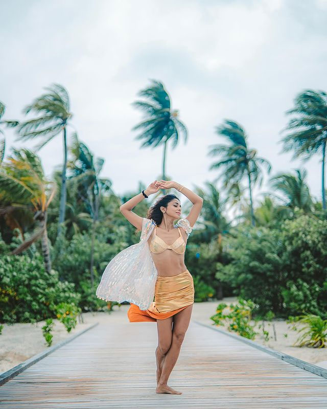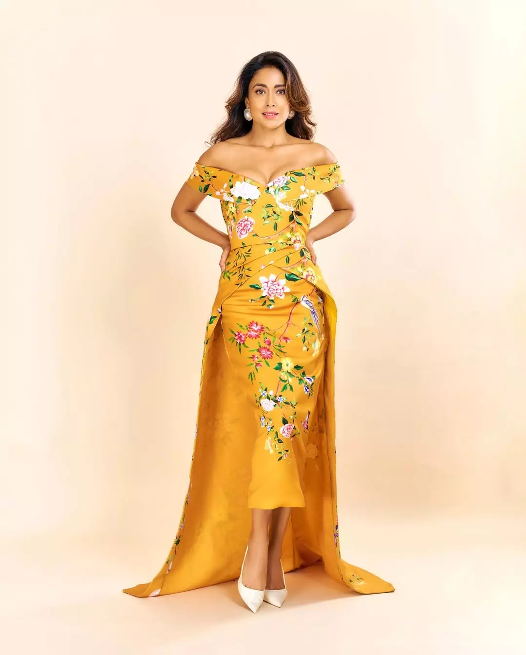 Shriya Saran shared a graceful new post on Instagram. She looked charming in a floral yellow dress with an off-shoulder style. Her warm smile added life to the picture. The simple background made her presence stand out even more. She accessorized with pearl earrings that matched her elegant look. Her caption read, “Wearing @marchesafashion Jewellery @ananaofficial @stilt-_communications Styled by @sukritigrover Sr stylist @vanigupta.23 Team @jaiswal.aditi- Shot by @akshhayamberkar Make up @sakpalnilesh267.”