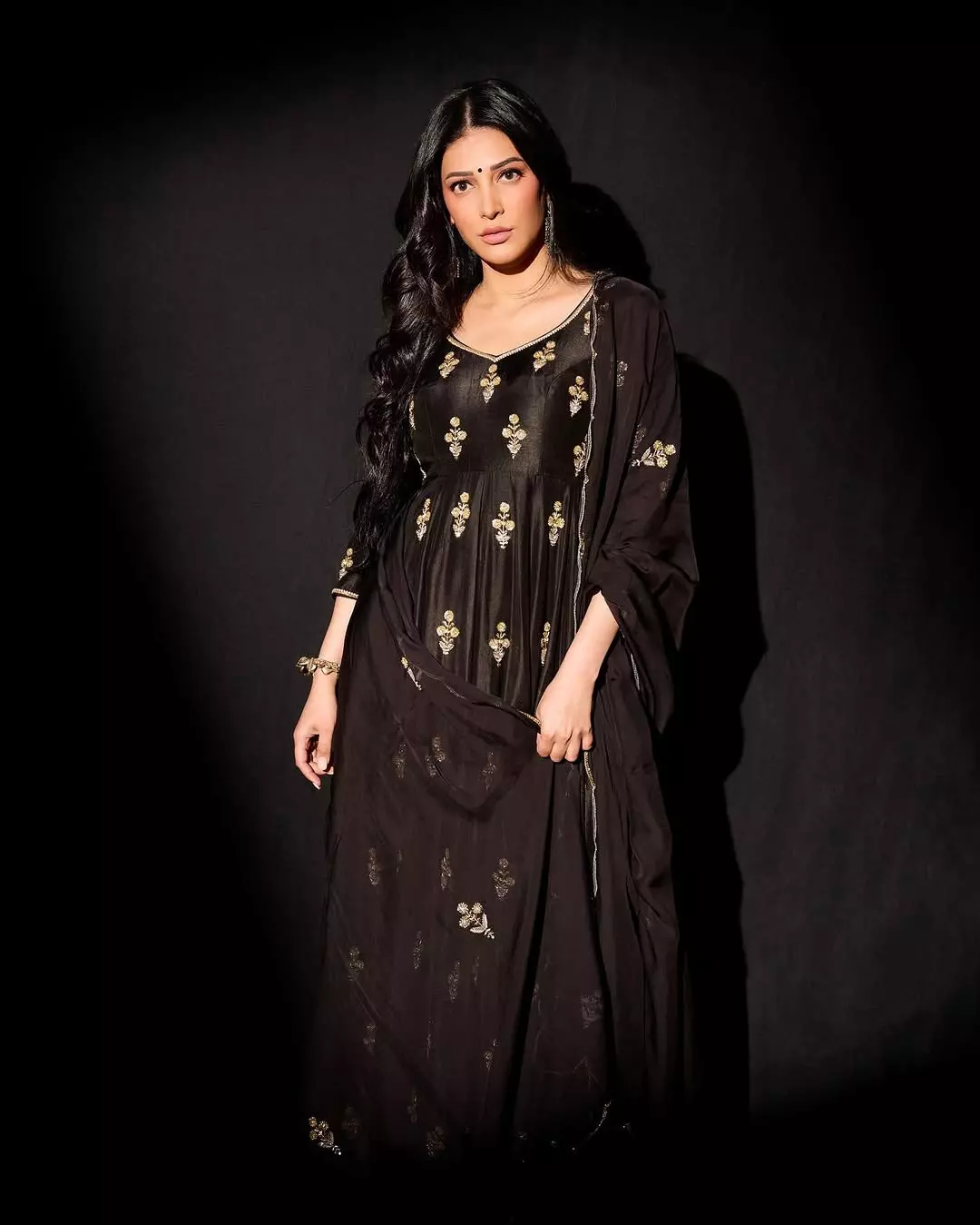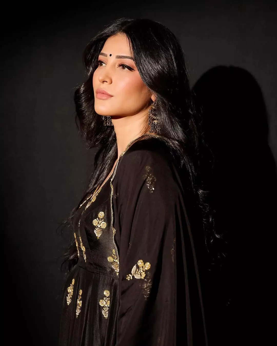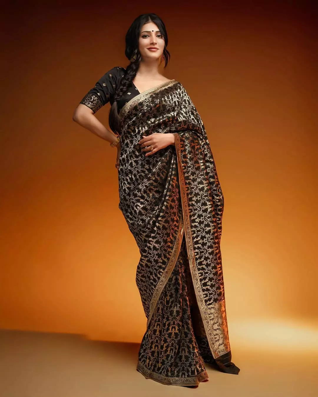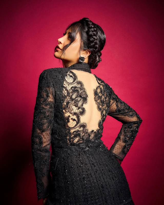 This glamorous look highlights Shruti's versatile style, blending modern glamour with classic charm.