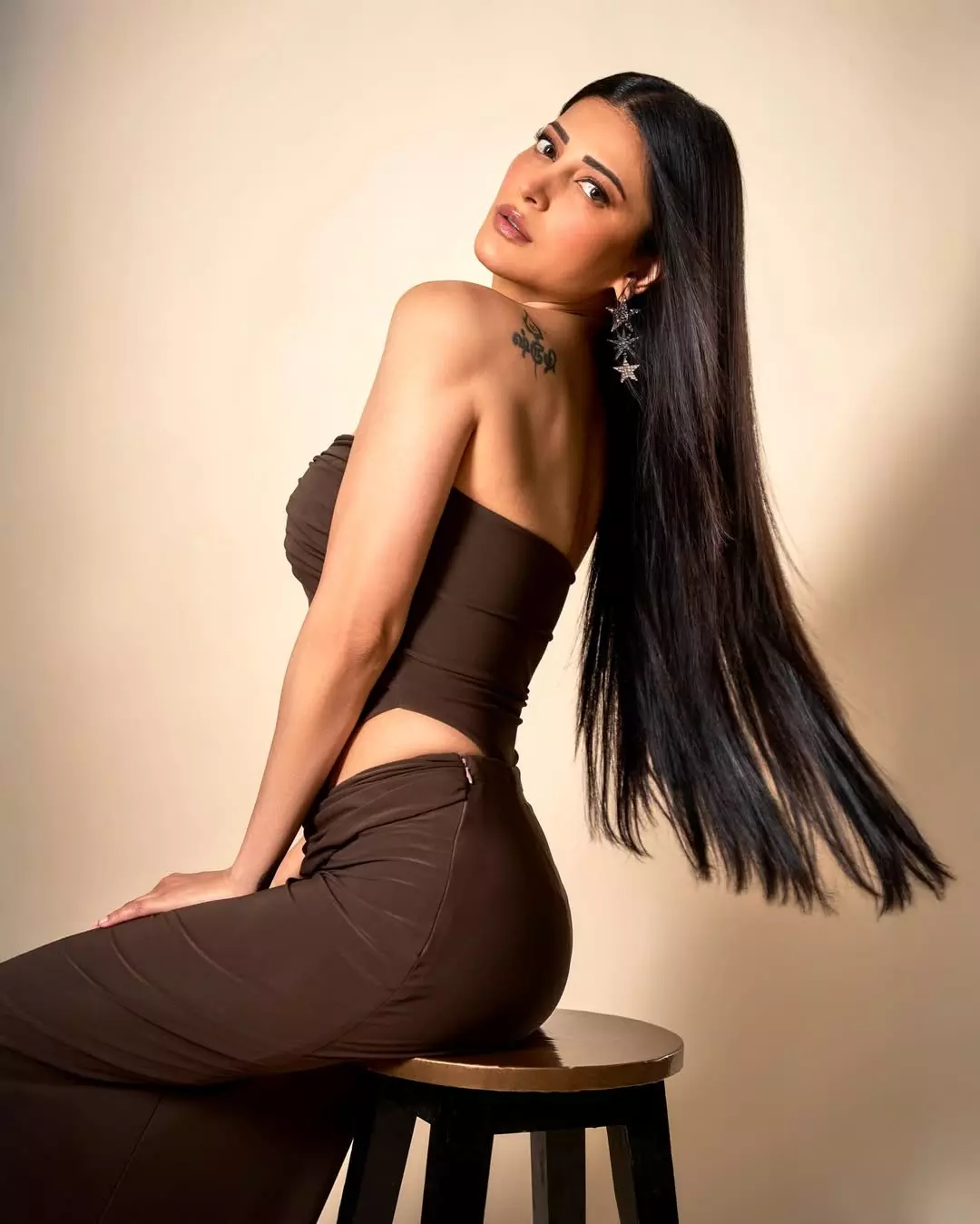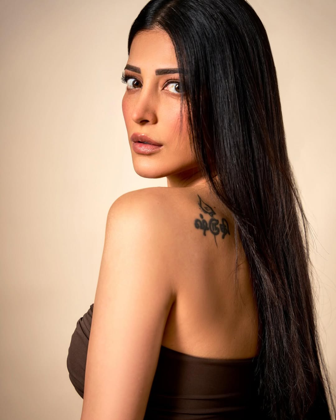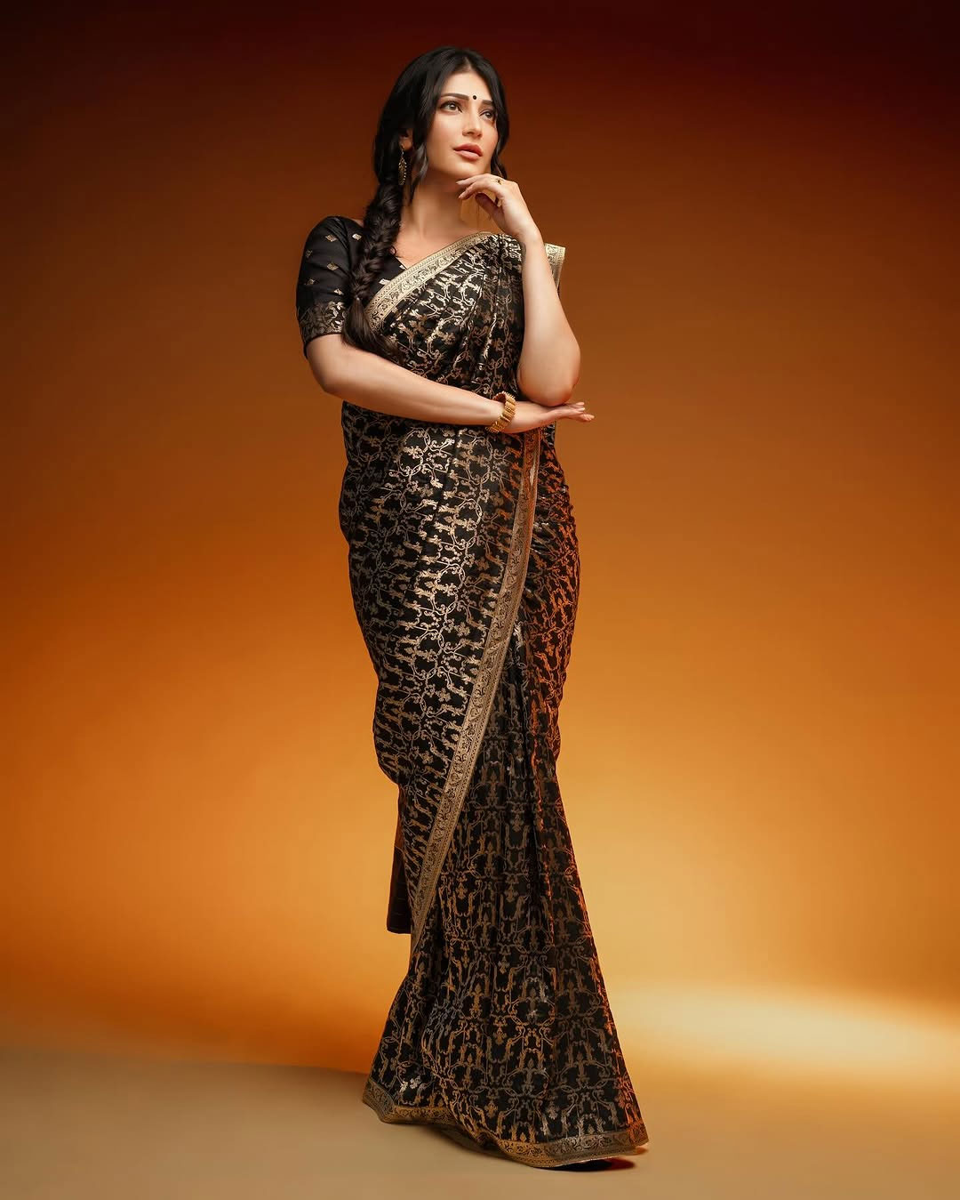 This glamorous look highlights Shruti's versatile style, blending modern glamour with classic charm.