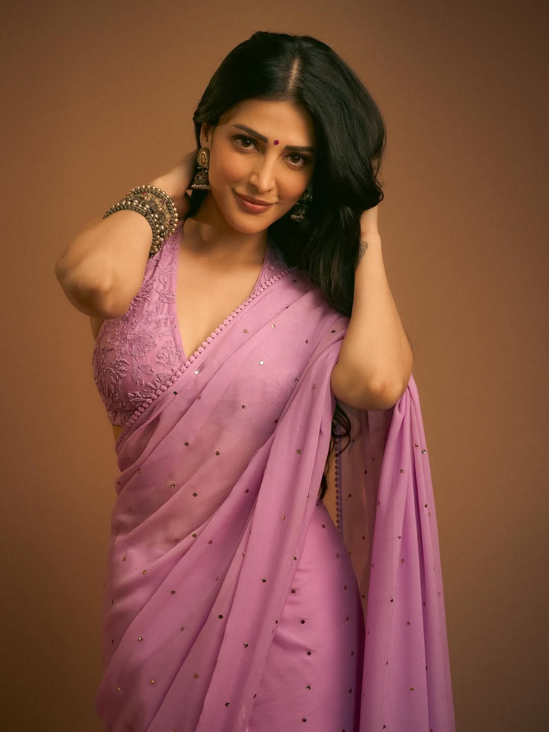 Shruti Haasan Brings Soft Festive Vibes in Pink Saree