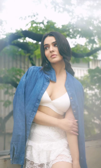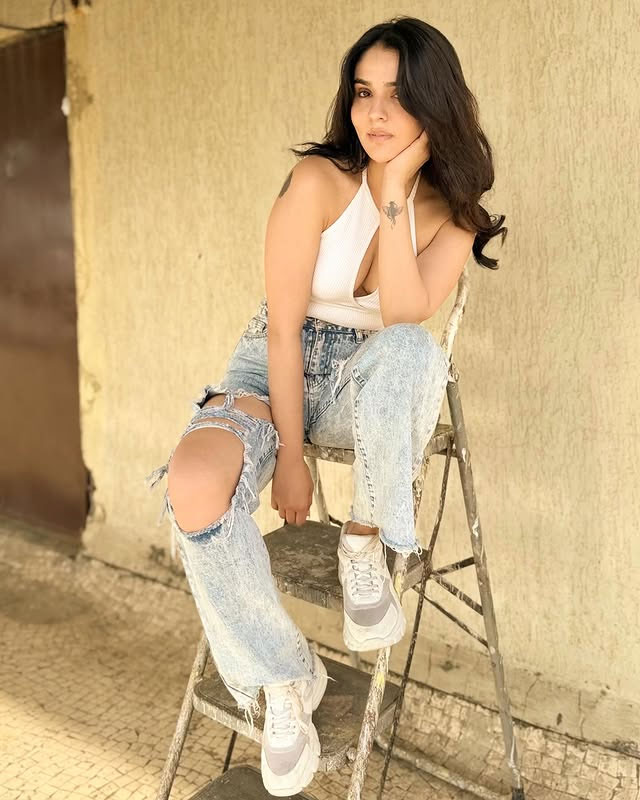 Sidhika Sharma known for her presence in music videos and her striking screen presence recently shared a new reel on Instagram that quickly caught the attention of her followers. In the photo from the reel, she is seen wearing a denim shirt over a white bralette and lace shorts looking straight into the lens with quiet confidence. The serene outdoor setting and her effortless expression add to the visual calmness. Sidhika captioned the reel: “posting photos as a reel so that you can obsess”.