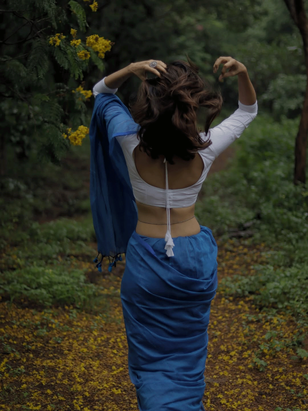 Simran Choudhary Enjoys the Monsoon Magic in Blue Saree