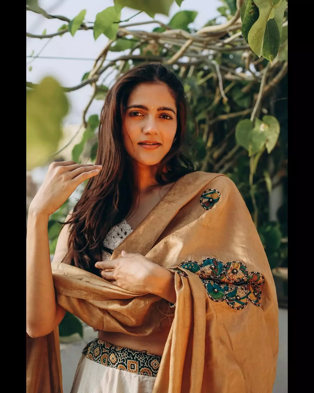 Simran gave photo credits to @kilaruness and mentioned @houseofnaaree. She also used hashtags like #simranchoudhary and rains july portraits.