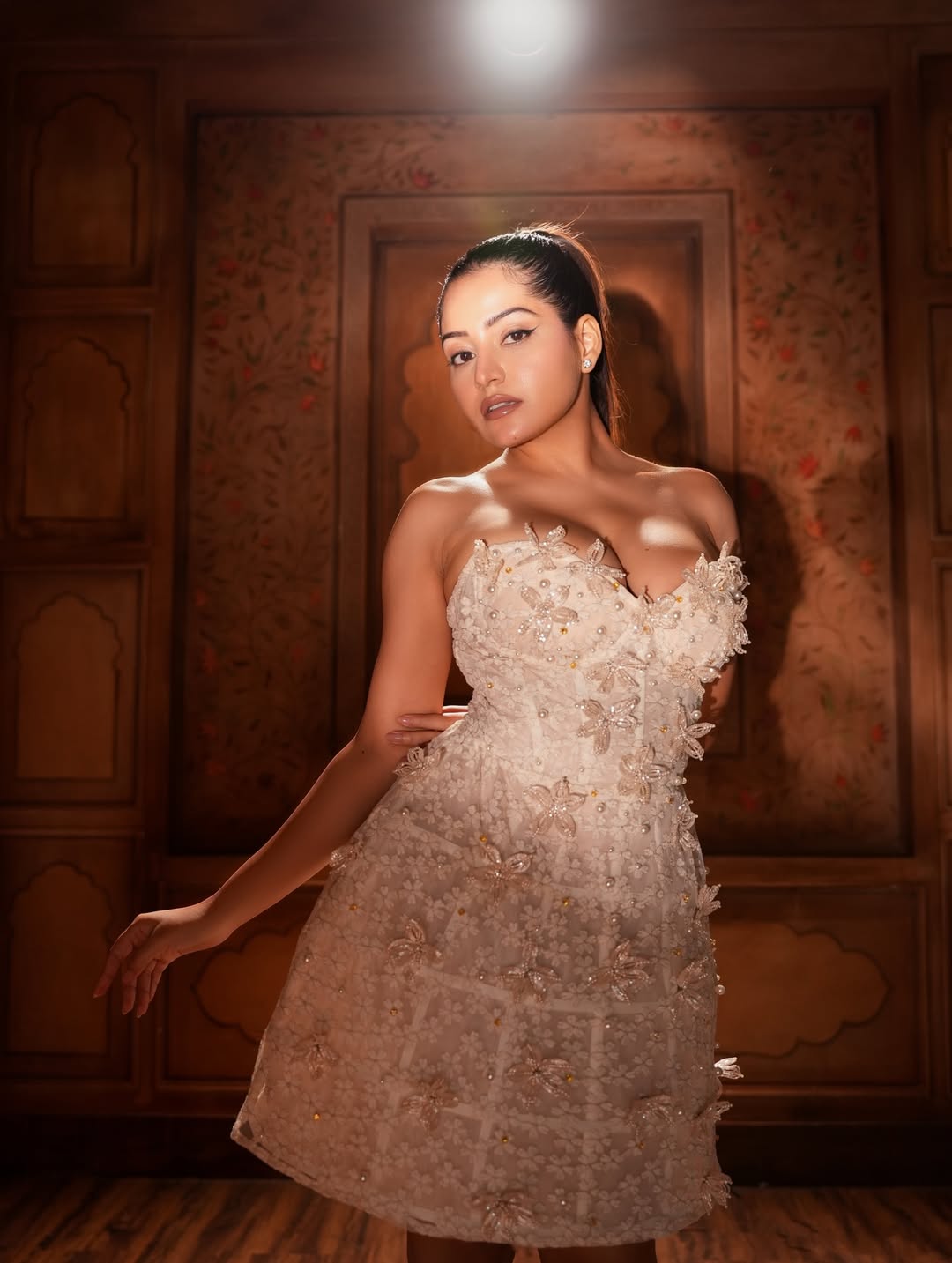 By: Tupaki Desk | 8 Dec 2025 1:48 PM ISTSimran Kaur has officially stepped out of a storybook and into a galaxy far, far away. This breathtaking "Fairy Tale Galaxy" corset gown by @lacemadeofficial is pure enchantment: hand-embroidered pearls, 3D floral appliqués, a dramatic veil headband, and a corseted bodice that sculpts like magic. Bathed in golden light, she looks like a celestial bride who fell straight from the Milky Way. "Falling into the Milky Way" Corset Dress – yes, we’re speechless too