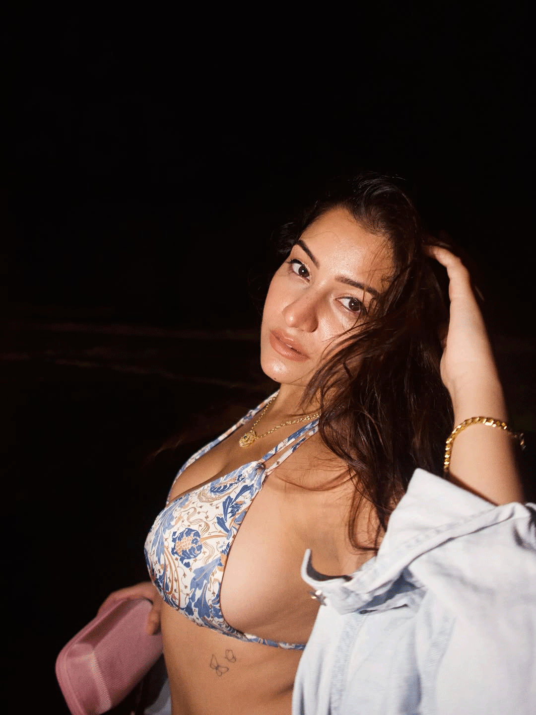 Simran Kaur looks effortlessly stunning in this chic and classy photo. Dressed in a beautifully detailed Corset @lacemadeofficial ❤️, she exudes elegance with a modern twist.
