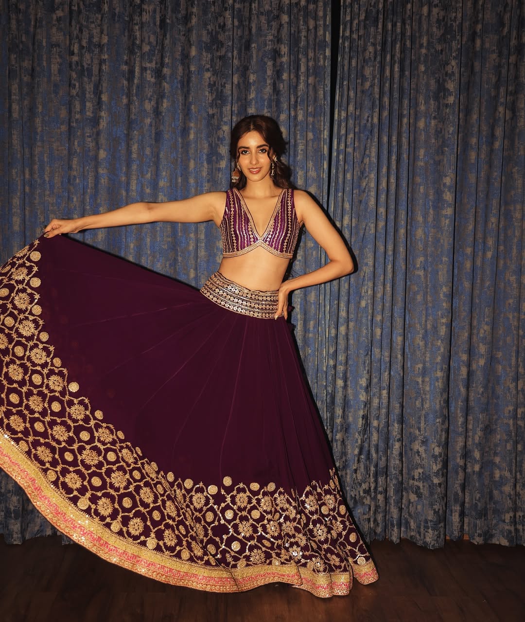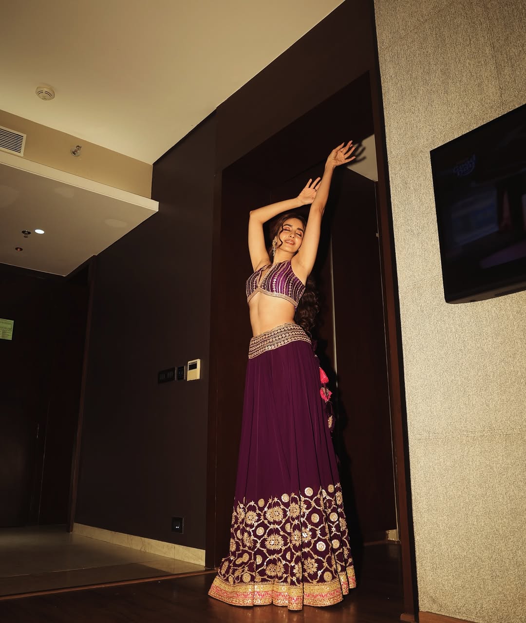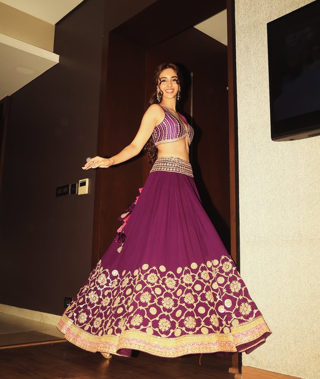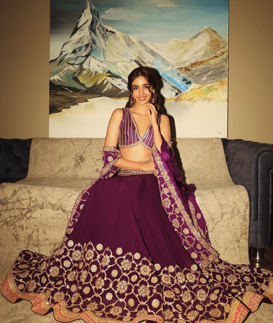 By: Priya Chowdhary Nuthalapti | 4 Oct 2025 10:57 AM ISTSimrat Kaur recently shared adorable photo on Instagram with the caption, “Felt pretty this night 🥺❤️.” In the picture, she is seen wearing a deep purple lehenga designed by Nidhi Tholia, styled by Prabjit Kaur and her team, while her hair was done by Nargis. The actress herself did her makeup. Her jewels, designed by Motifs by Surabhi Didwania had perfectly completed her traditional attire. The photo is clicked by Manish.