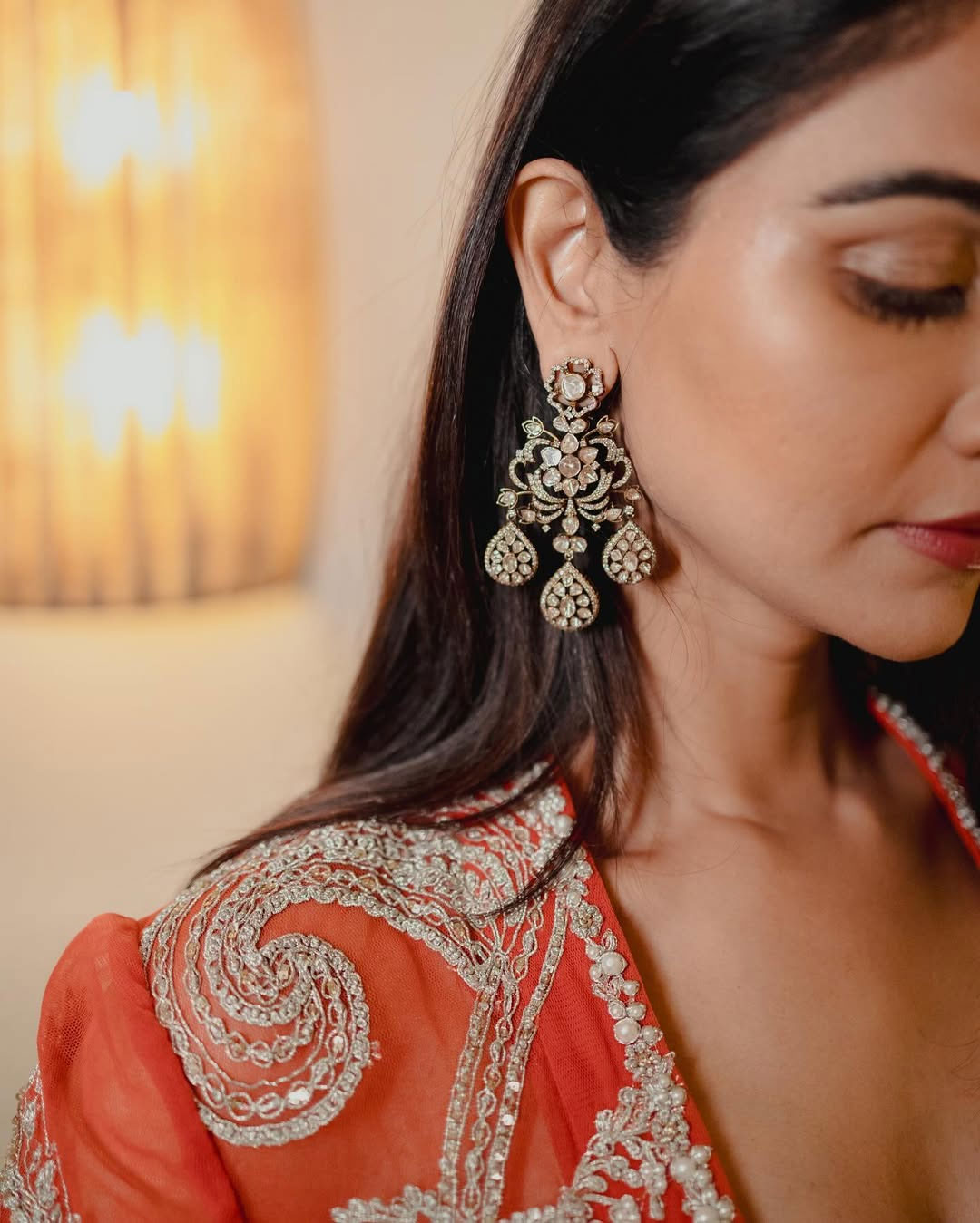The caption credits the stylist Jukalker, while the outfit is designed by Shantanu and Nikhil and coordinated through Tandem Communication. The jewellery worn by Sneha comes from Zoya Jewels. The overall styling team included Junaid Shirazi,