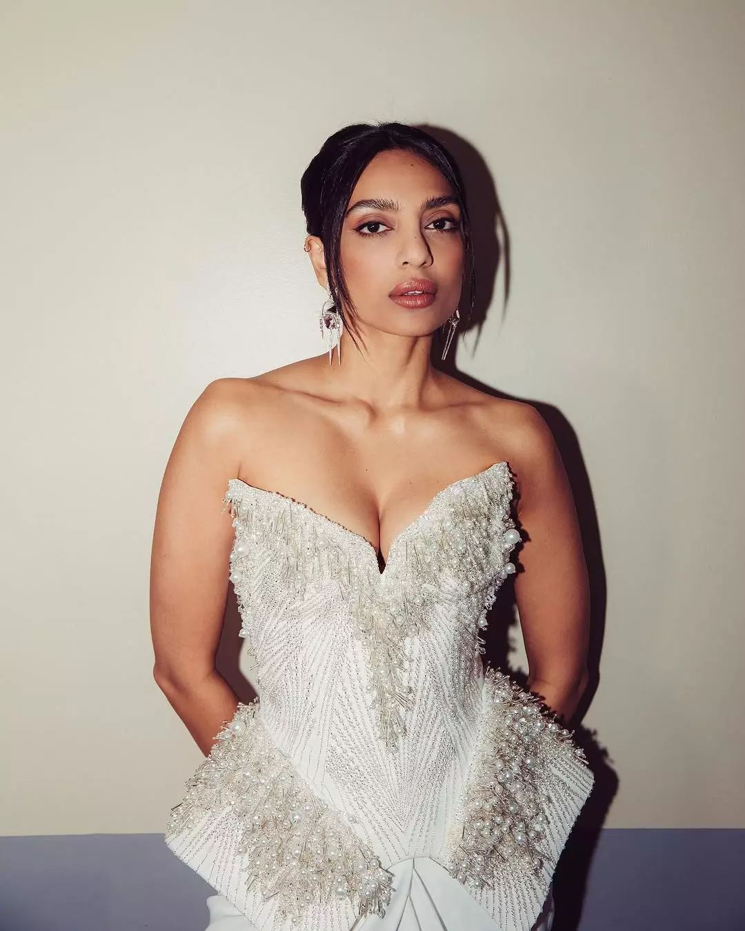 The beauty look for this shoot was created using products from charlottetilbury, available on mynykaa. The makeup includes Airbrush Flawless Foundation, Blur Concealer, Matte Beauty Blush Wand, Rock N Kohl eyeliner, Exagger-Eyes Mascara, and Lip Cheat with Matte Revolution lipstick.