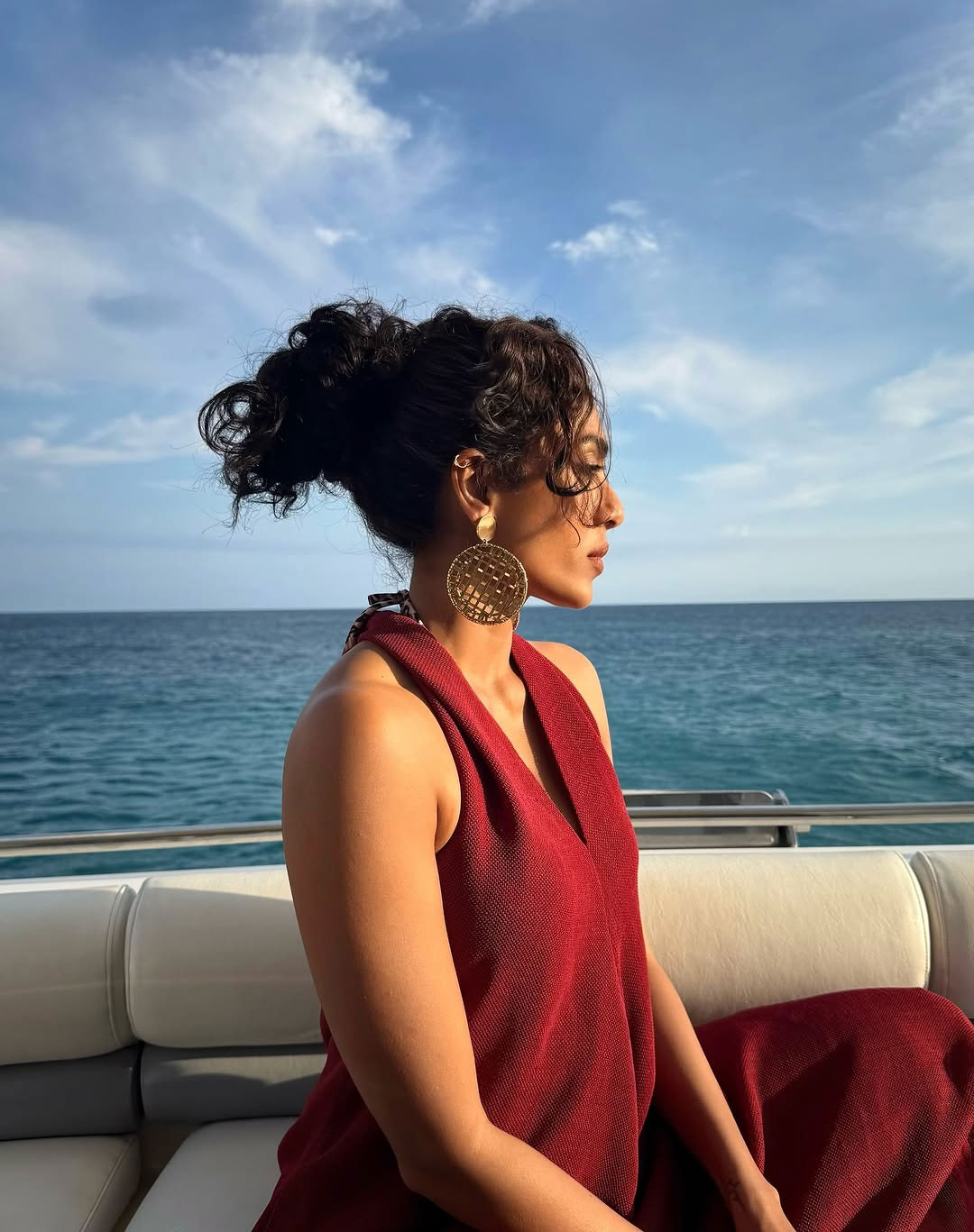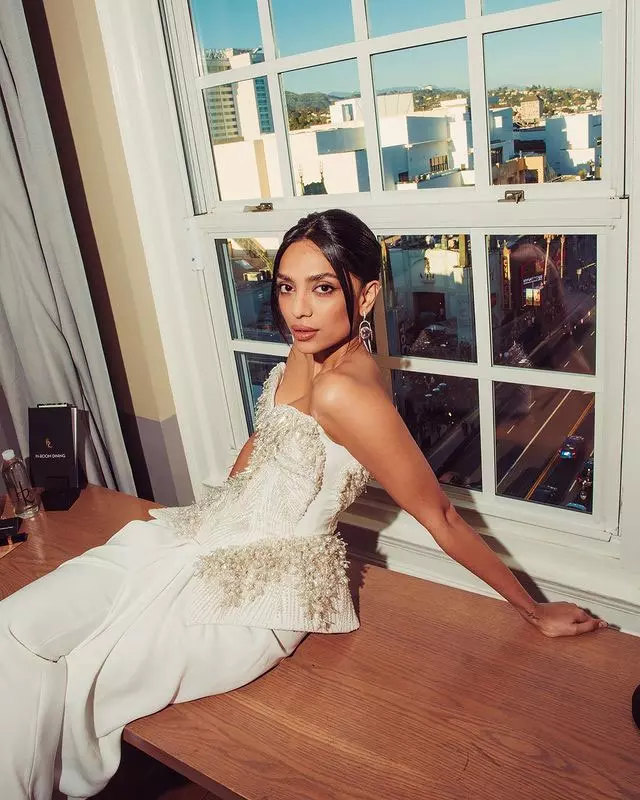 She kept her styling simple yet attractive. Sobhita wore statement earrings, a ring, and a stylish watch. Her hairstyle was neatly parted in the center and pulled back, giving her a modern touch. Her makeup was light, with soft colors that highlighted her natural beauty.
