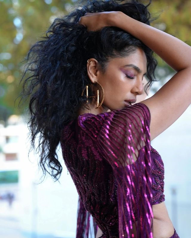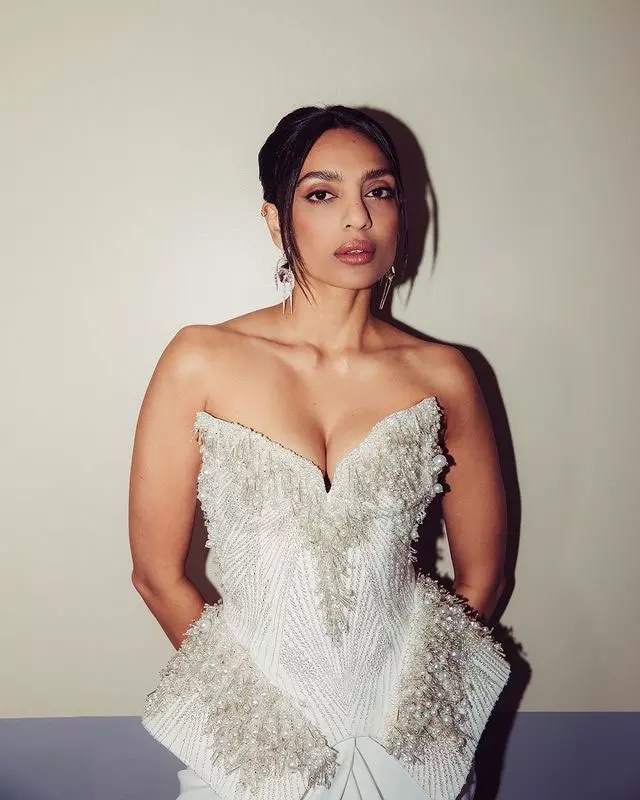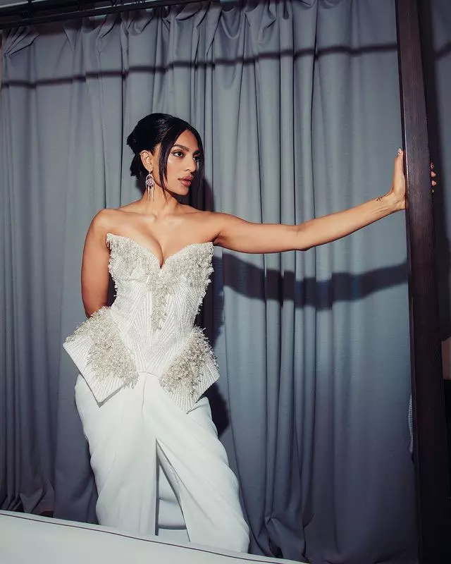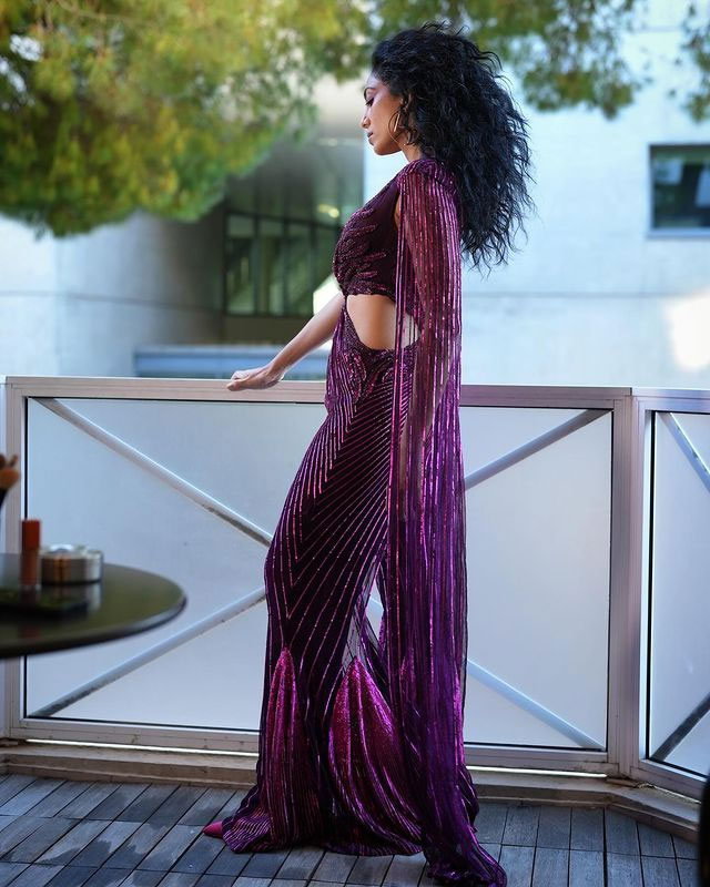 But who stole the show was Sobhita Dhulipala and she shared these pics on Instagram today. She wore a beautiful silver and ice-blue saree. The saree had fine designs with shining stones and embroidery. It gave her a soft and elegant appearance on the red carpet. She paired it with a sleeveless velvet blouse that matched perfectly with the saree.