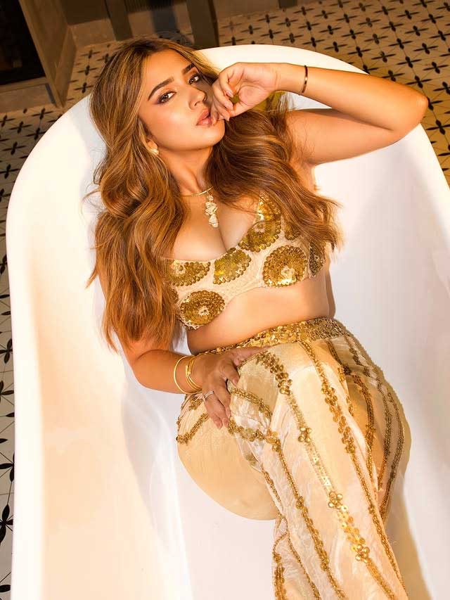Roshni Walia’s recent Instagram grid speaks volumes about her style choices confident, trendy, and full of life. Whether she's dressed in a shimmering golden co-ord set, a laid-back crop top, or dazzling in club wear, she brings her own flair to every look. Her feed also features glimpses of her upcoming film Son of Sardaar 2, where she’s seen in glamorous costumes that match the film’s festive vibe. Mixing modern silhouettes with bold textures, Roshni isn’t afraid to experiment. Her love for statement pieces, whether it’s a sparkling skirt or a strappy top, shows she knows how to balance comfort and style.