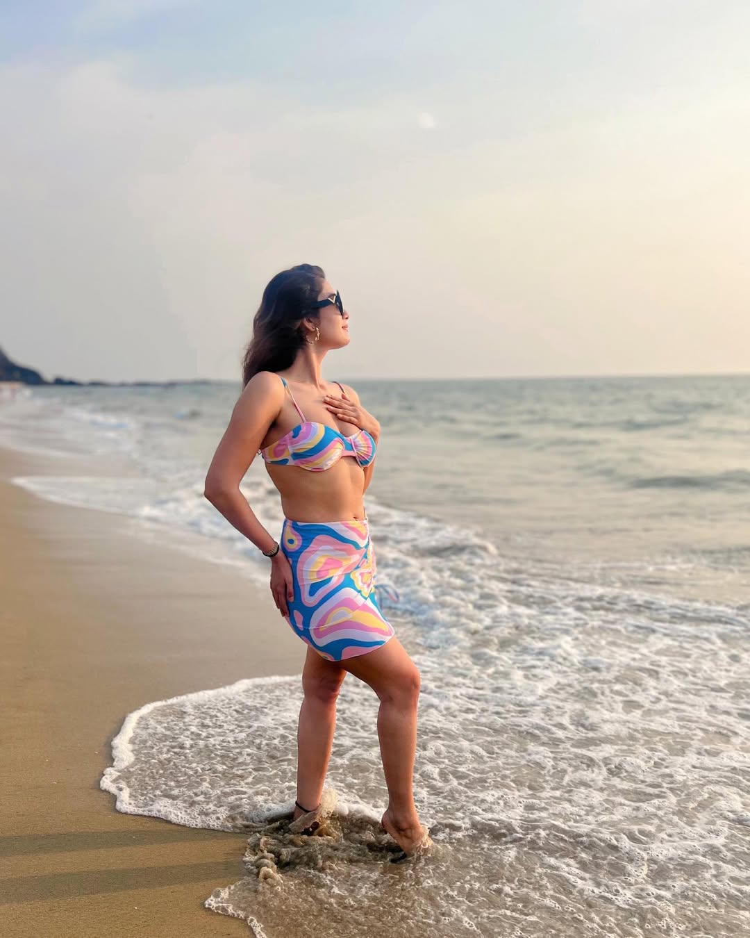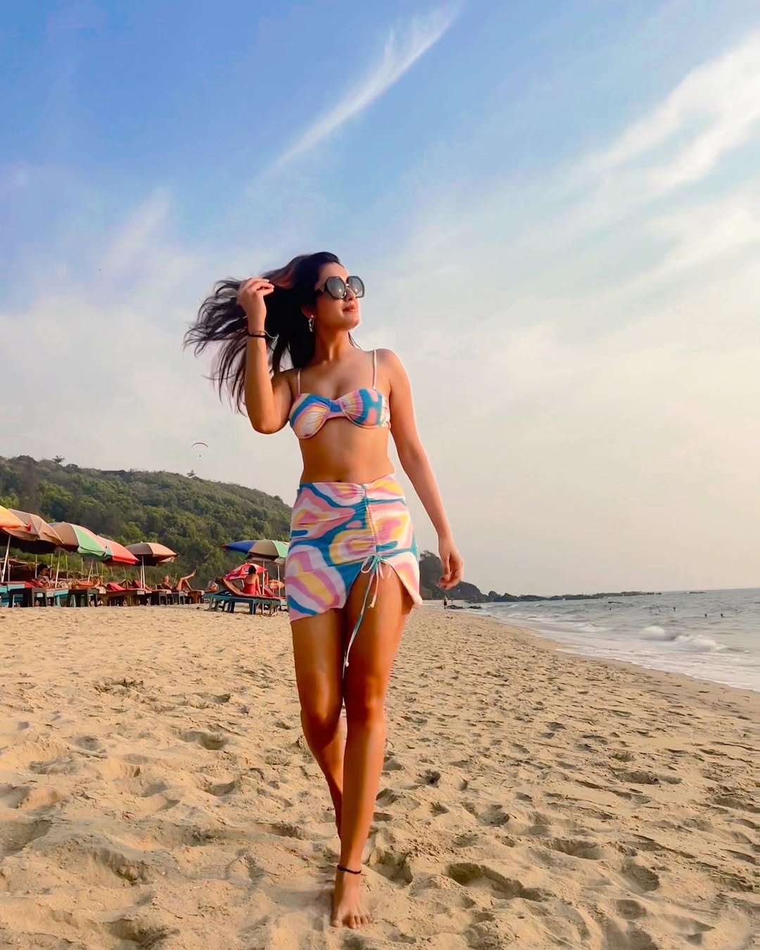"Cosmic chaos ✨🌌🌙🪐💫 Makeup : me 🙋♀️ Hair : beach did her thing 💁♀️" the actress wrote as a caption, crediting herself for the makeup. The wind beachside has given that windy feels to her hair, which the actress also wrote.