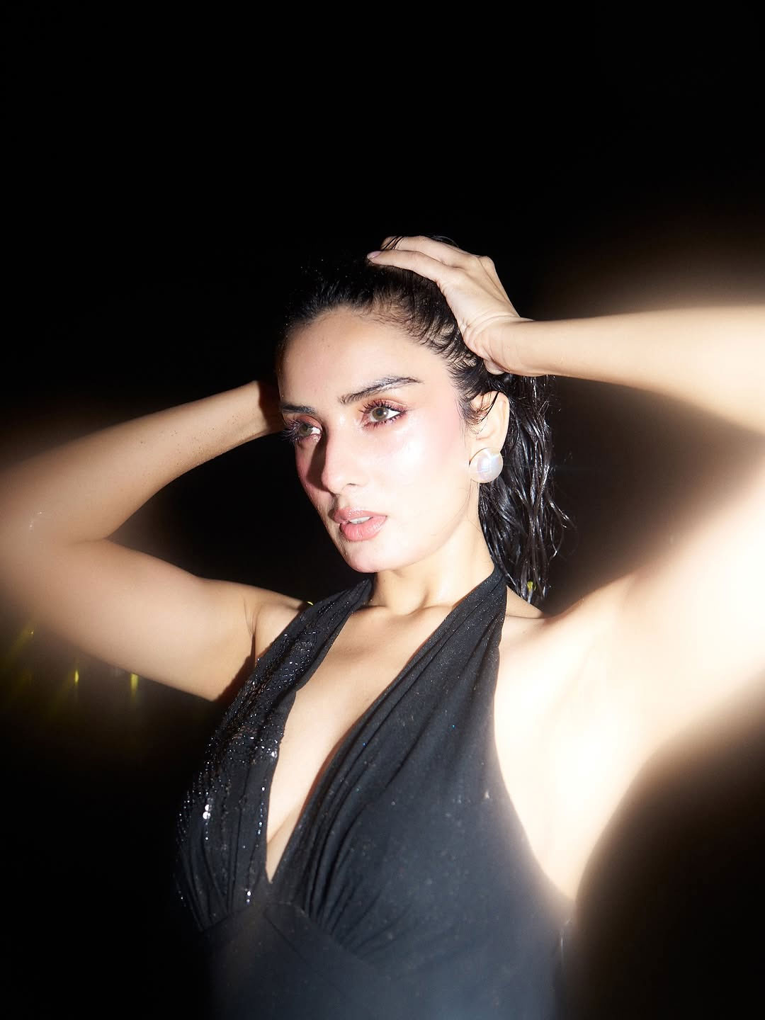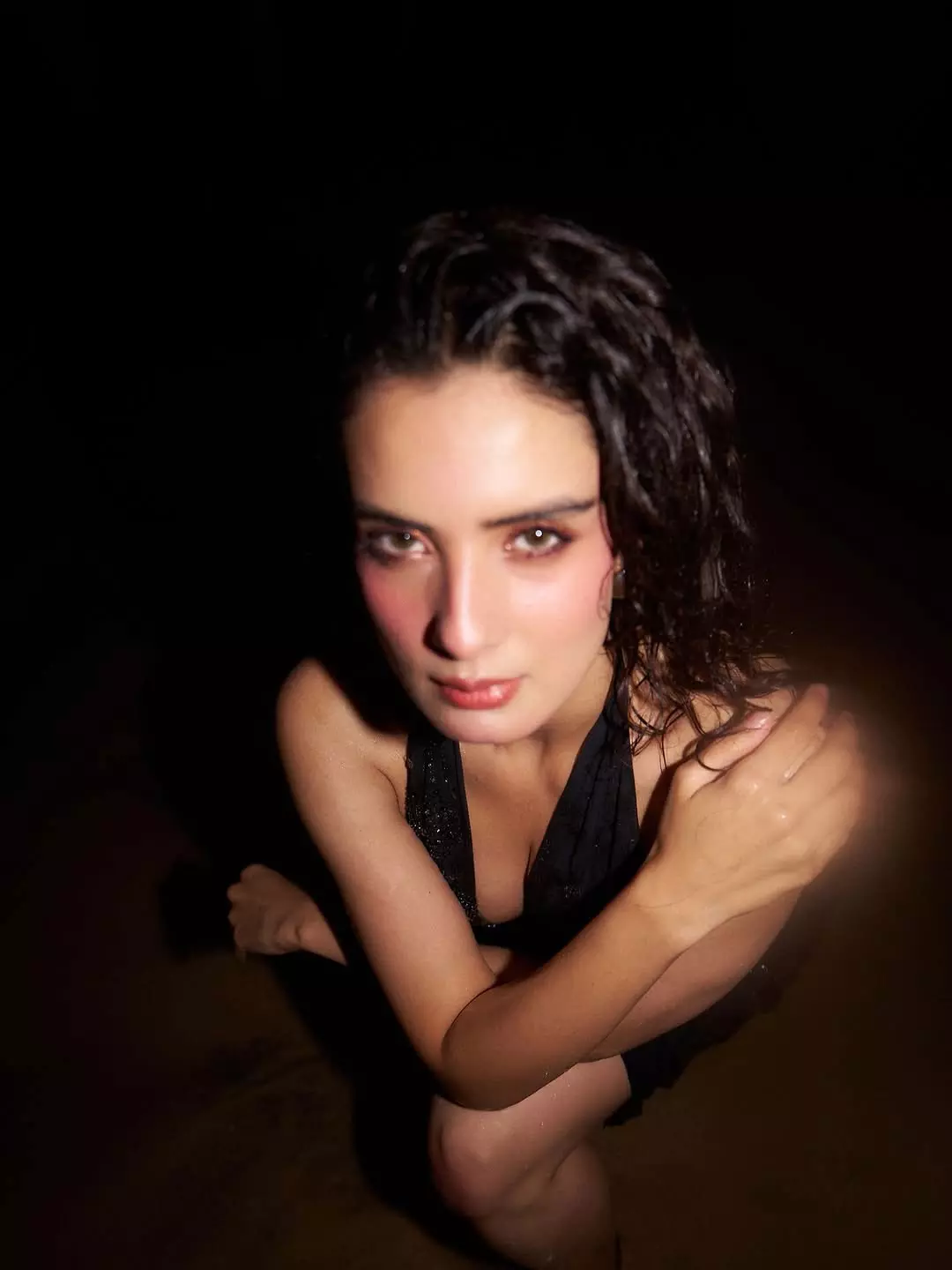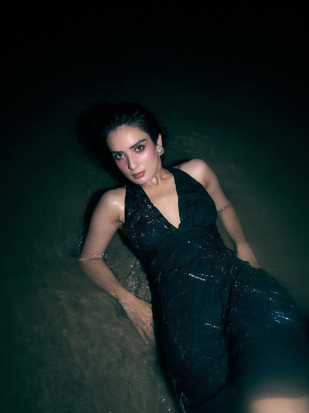 Model Sonali Kukreja posted a striking picture on Instagram. The photo shows her standing under water droplets at night.